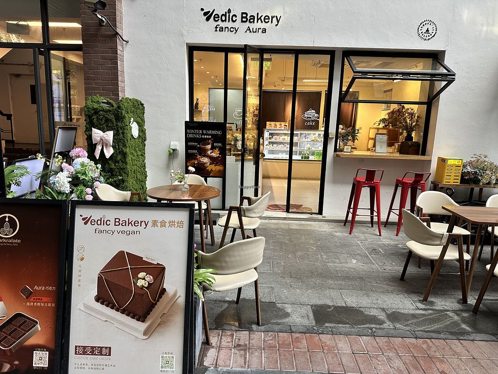 Quaint, fully vegan bakery/café, located on a side pedestrian street. Offers an extensive selection of cookies, cakes (including single-serving), bagels, breads and pastries. Many veganized traditional Chinese baked goods on offer. Coffee and tea available as well. Indoor and outdoor seating. Open Mon-Sun 9:00am-9:00pm.