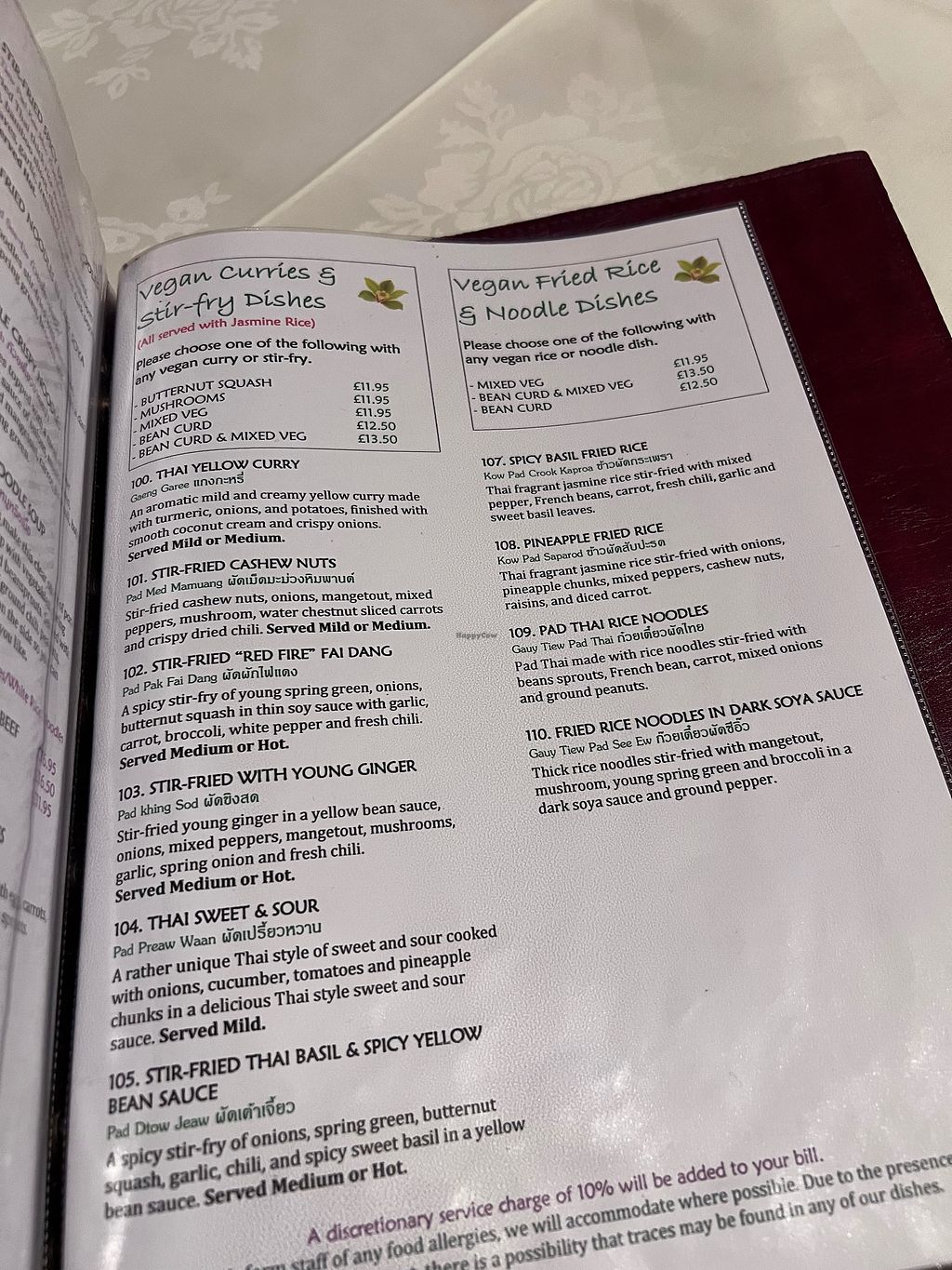 Loads of vegan options marked on menu. The food was fantastic, super unique atmosphere (very vibey) and service was super friendly. Now one of my favourite restaurants and possibly the best Thai curry I’ve ever had