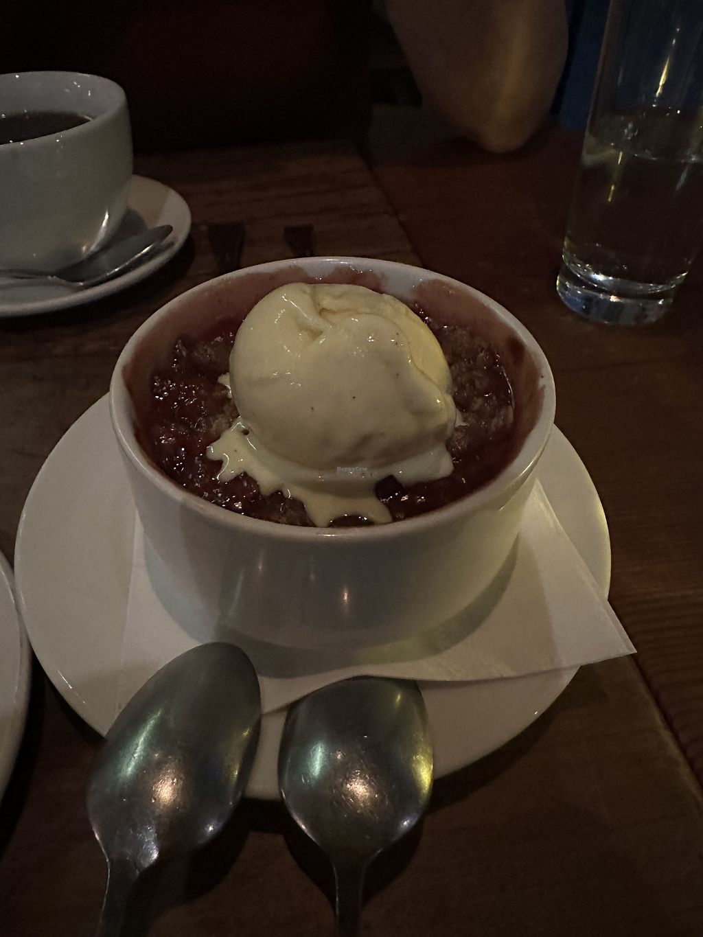 - Rhubarb pie with ice cream: comforting and sweet, great pairing of flavors and textures