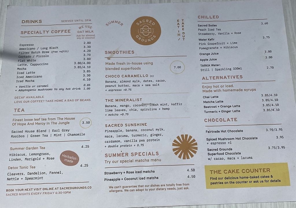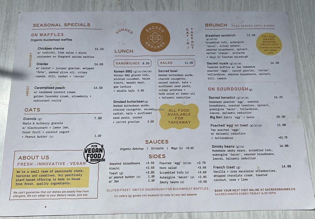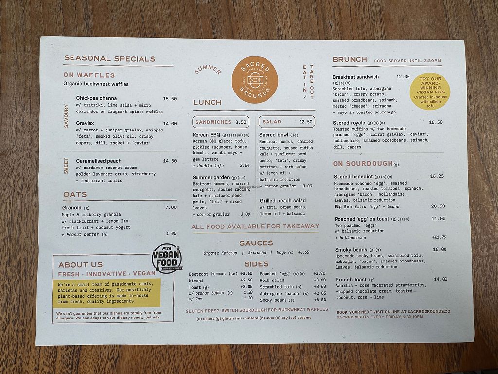 We came to Exeter for the day and had lunch at Sacred Grounds. What a treat, I had the breakfast on gluten free waffles, with their famous egg, my husband had the breakfast sandwich. Delicious, best meal out we have had in a long time. Shame we live so far away, or we would pop in all the time.