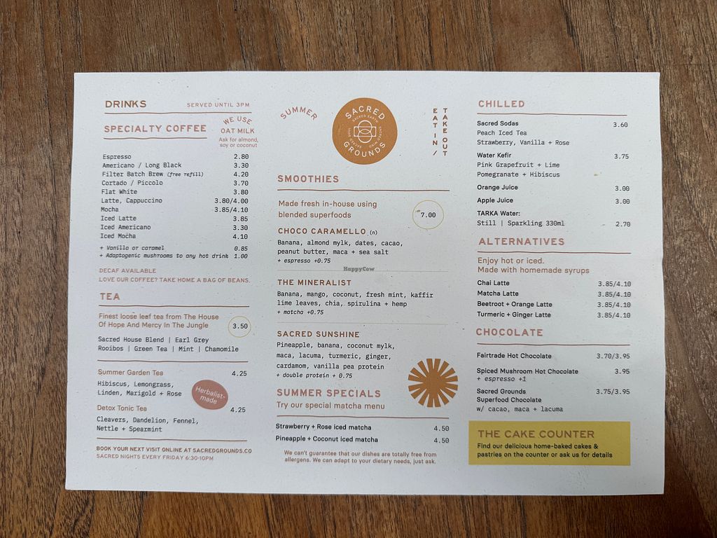 We visited Sacred Grounds for brunch after wanting to visit for a while and wasn't disappointed. All the food is really tasty - the poached 'egg' was so good. The coffee was excellent, the staff were very friendly, and they're located in such a cool spot.