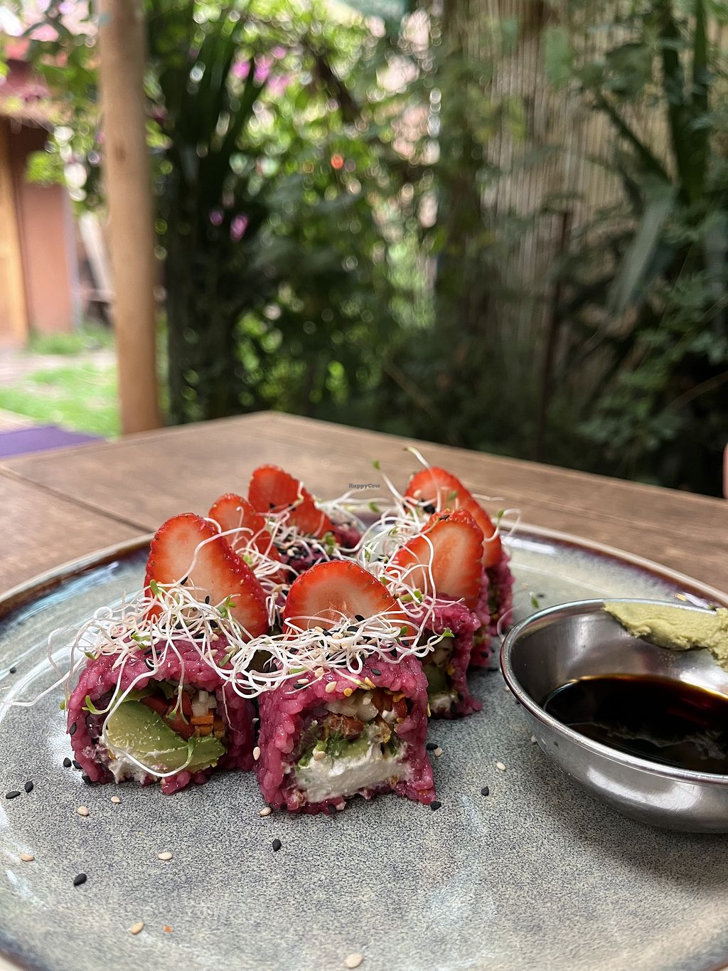 Dinner at Sacred Sushi was indeed a blissful experience. The place resembles a lush and cozy oasis of calm, that invites to slow down and enjoy the moment. The pink sushi with strawberries on top were delightful 👌🏼