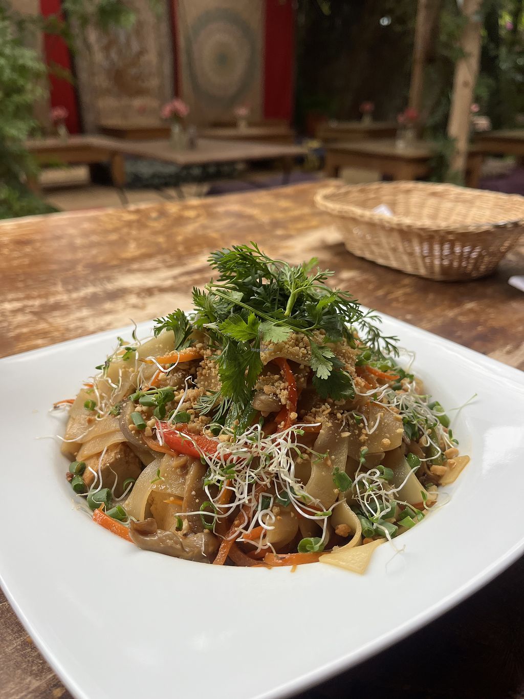 We eat Buddha Bowl and a Curry dish. Both were very good. The atmoshere is relaxing as the dishes are served in the garden, sitting on pillows.