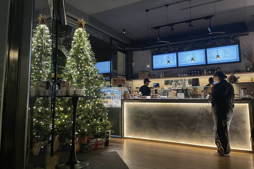 Serves meat, vegan options available. Café serving clearly marked vegan dishes. Vegan offer includes smoothie bowls, salad bowl, toast with pulled jackfruit, cookies, and chocolate/lemon loafs. Has plant milks for coffee and smoothies. Open Mon-Fri 07:00-20:00, Sat-Sun 08:00-20:00.