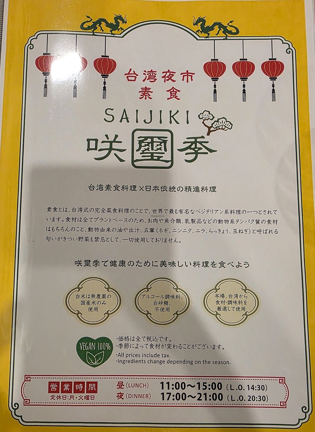 Saijiki was great! It's not Japanese food, but Taiwanese. It's delicious. All vegan. And it has a good portion size for the price. I would recommend if you are looking for delicious and good value vegan food.