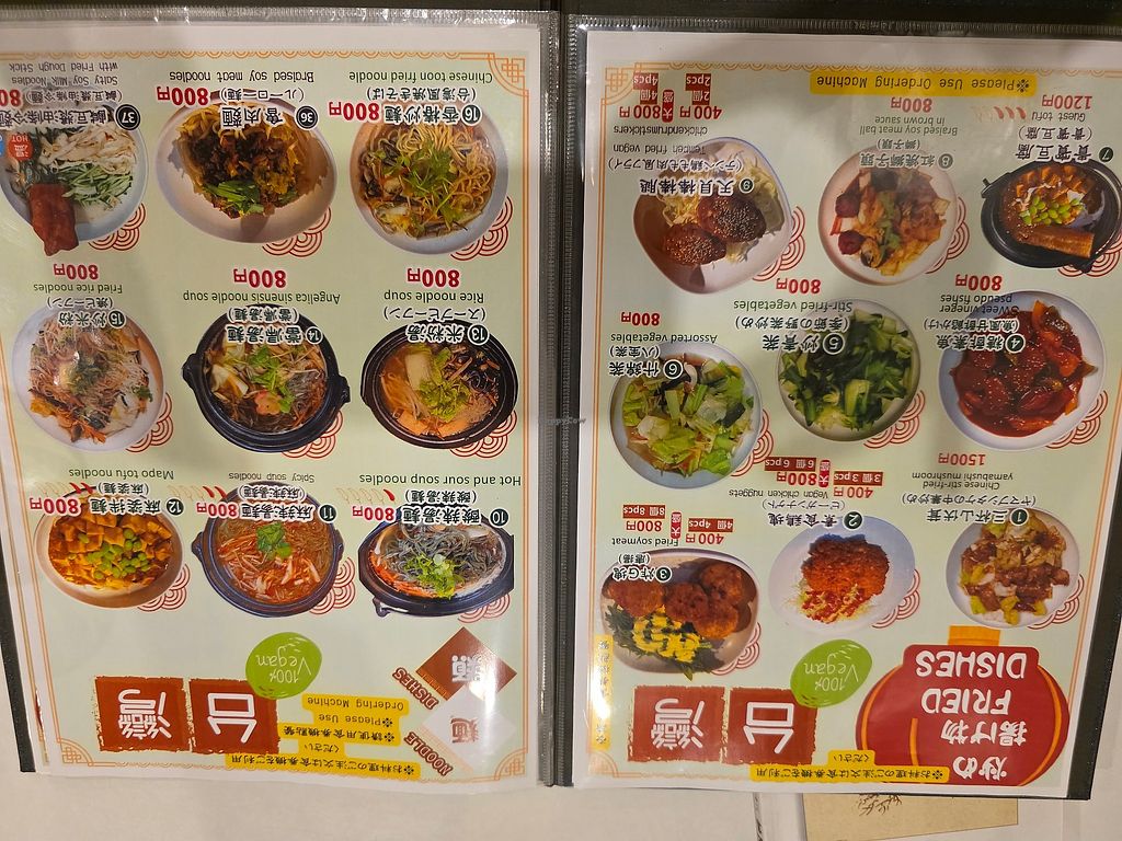 Fried mock meat meals are so good fried rice (chahan) is delicious. But ramen is a bit bland (taiwanese style taste). If you can eat numb chili (mala) don't miss mabo tofu for any reason