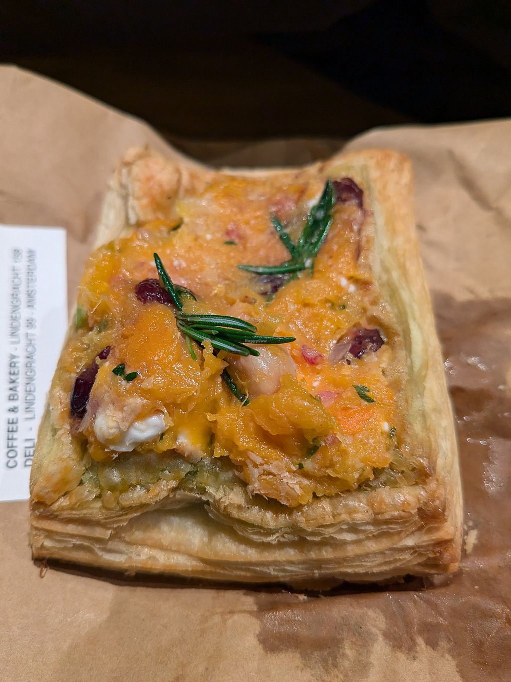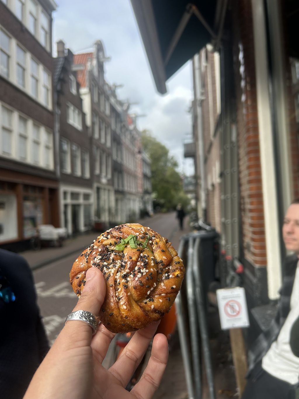 We had the Hoisin bun filled with seitan and it was absolutely delicious. It was very busy at the bakery with a really long queue, so we went to the Deli on the opposite side of the road where it was less crowded but we couldn’t find a place to sit so I took it to go. Would have loved to try more - there were amazing sandwiches including vegan halloumi and other protein packed breads and great looking croissants. It’s a bit on the pricy side but I wouldn’t expect otherwise in Amsterdam with that high quality food. Will be back!