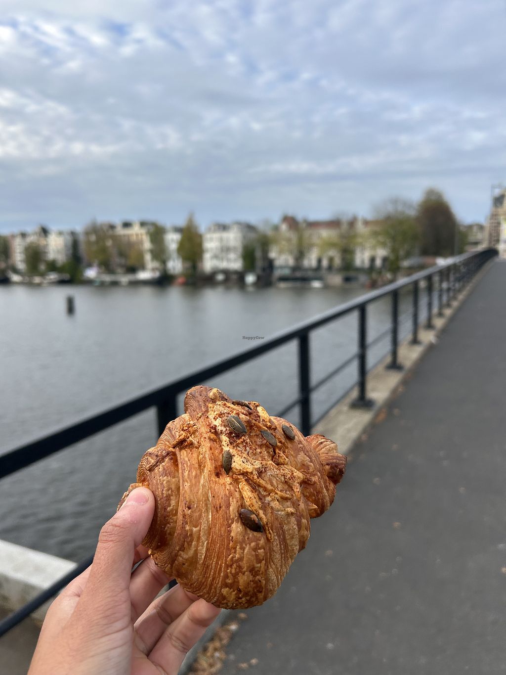 Cute little cafe in a quieter area of Amsterdam. All plant-based so you have all the pastries/sandwiches to choose from. The staff are friendly and nice and the food is tasty. Loved the cinnamon croissant and the Hoisin bun!