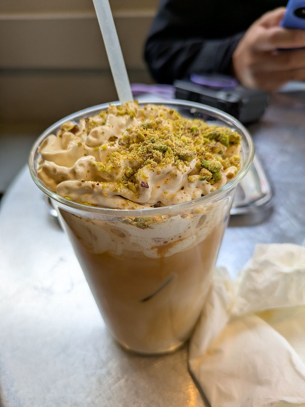 My partner had the pistachio latte and said it was okay, wished it had more pistachio flavour...