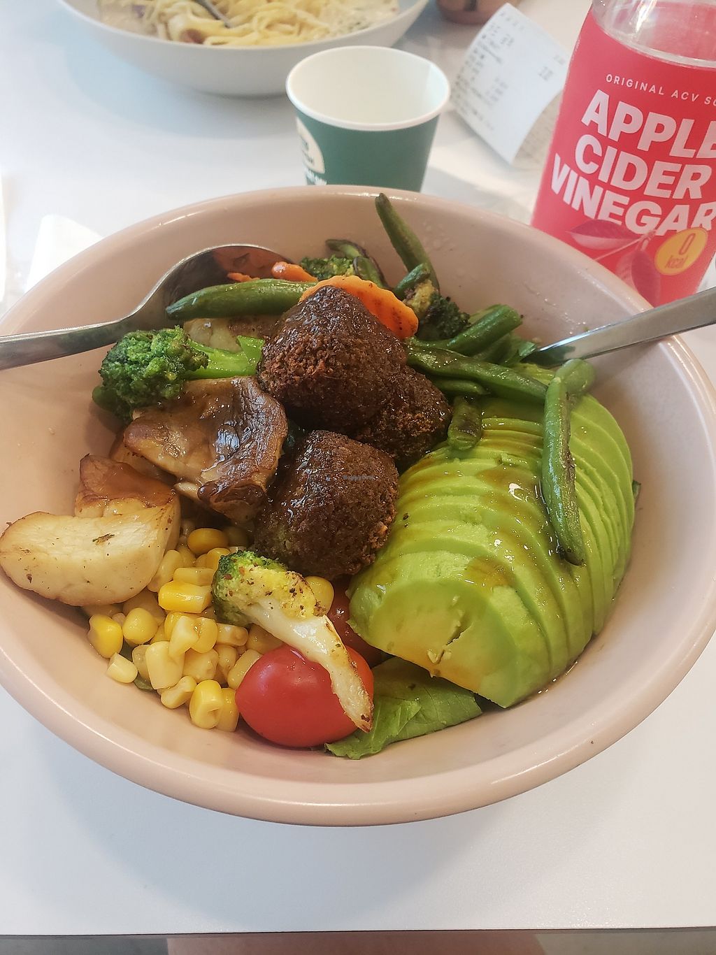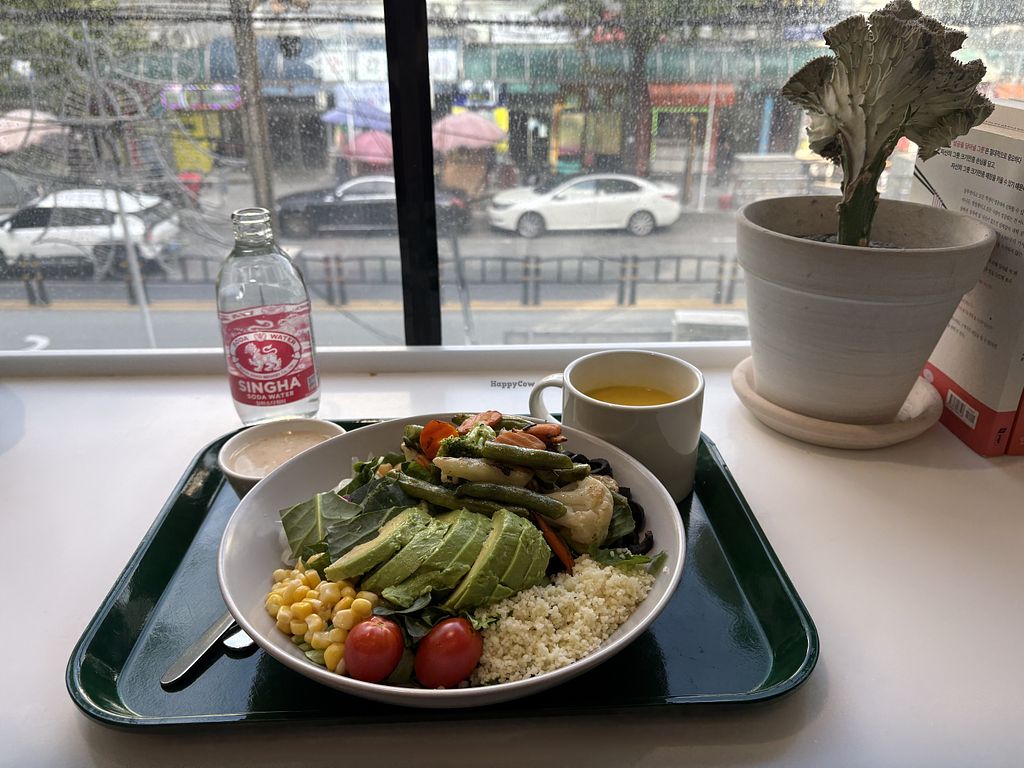 Read moreU on the app. The “vegan” salad says it has bacon, shrimp and other meat so I had to go to the restaurant to be clear it didn’t. It’s very annoying to order in Korea because they love to put meat (specifically ham or shrimp) in everything even if you ask for no meat. This salad was fine but left me wanting something extra. It could use some more interesting veggies or herbs. Sweet corn and cherry tomatoes are kind of boring. I wish they had some broccoli or zucchini.
