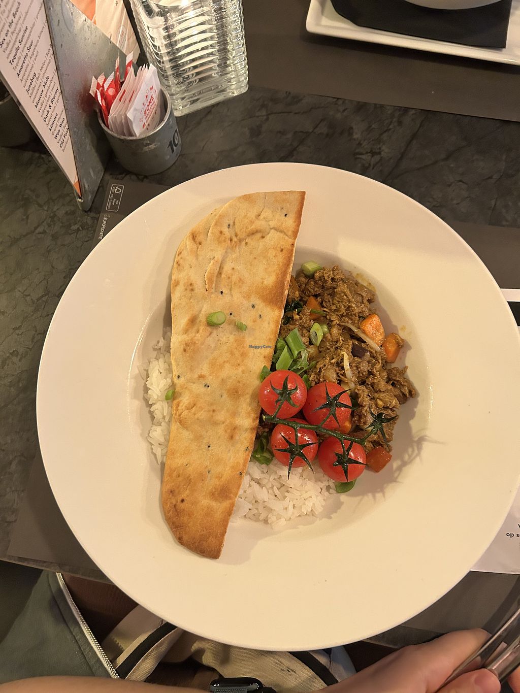 Veganized Quinoa-falafel burger with fries and vegan mayo and a Duvel …