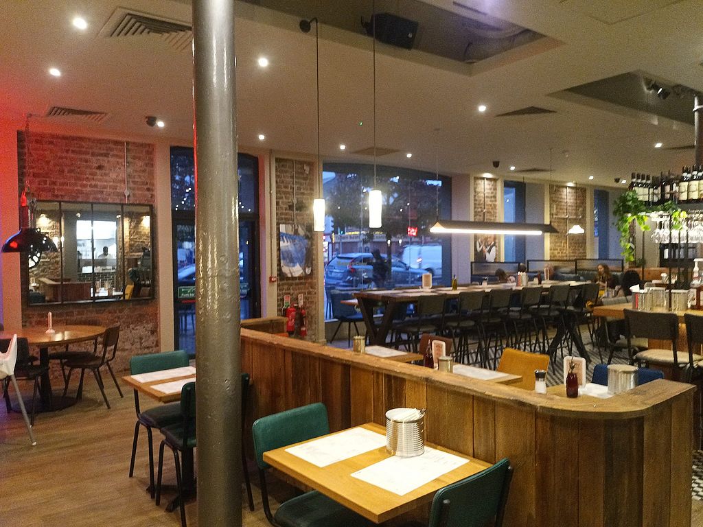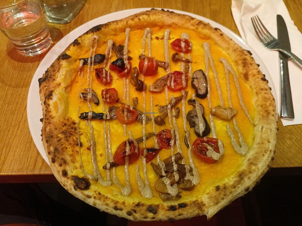 Serves meat, vegan options available. Pizza place with multiple clearly labelled vegan options., Vegan pizza, focaccia, and tart. Open Mon-Wed 12:00-22:00, Thu 12:00-22:30, Fri-Sat 12:00-23:00, Sun 12:00-22:00.