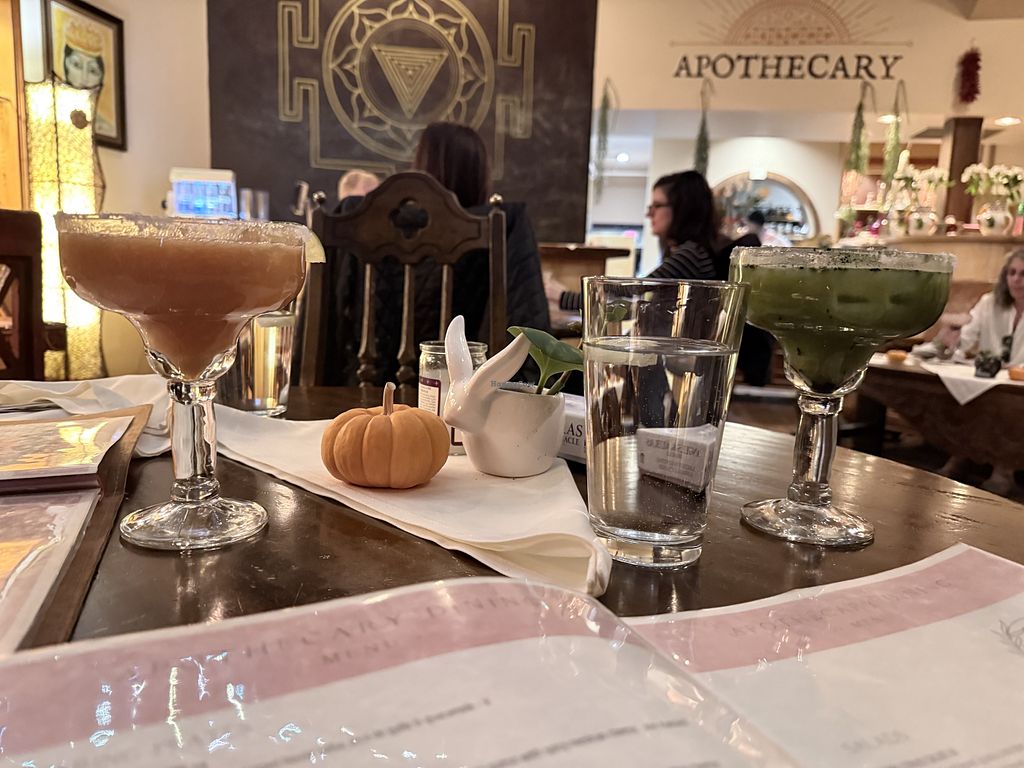 My partner and I (both vegan) are visiting a non vegan friend in Santa Fe. We stumbled upon this place walking downtown and I saw a chalkboard sign for vegan tiramisu out front- I got so excited because I’ve been craving tiramisu for a while but haven’t found a vegan version! We had a great lunch here, a little pricey for me but well worth it for a treat. They have great drinks with every kind of herb and adaptogen you could think of. The menus didn’t look very vegan on first glance but the waitress said that most menus items could be made vegan. We all enjoyed our food it was very healthy with nice portions. The desert was fantastic as well. We had a good laugh with the waitress. All in all a great welcome to Santa Fe.