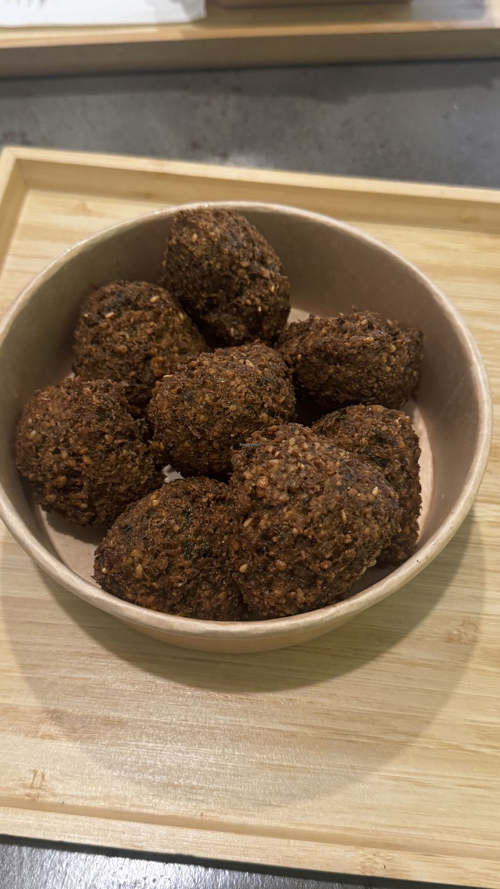 We had a cauliflower wrap & 8 falafel that were supposed to come with tahini but didn't. We were the first ones in the restaurant but still the food was slow to arrive, the wrap was nice but felt like it hadn't been assembled with great care. The falafel were really tasty but the whole vibe felt a little flat like there was no love in the food, especially in comparison to falafel places like Maoz in the Netherlands.