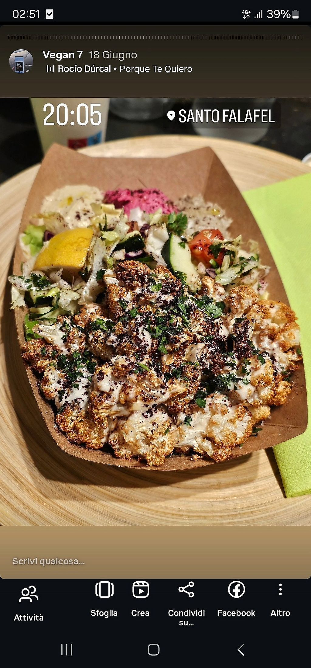 Il mio amico ha preso la Sabich, io il cavolfiore fritto con tahina, fattoush, hummus di barbabietola e babaganoush, molto buoni entrambi, ma non è stata la nostra prima scelta, i piatti che volevamo o non erano disponibili o contenevano aglio, per il quale entrambi abbiamo un odio feroce. Il signore al banco era gentile, ma non sembrava capire bene le nostre richieste. Per dessert abbiamo preso la Kanafeh ai datteri, che era troppo unta e troppo dolce. Avevamo regolarmente prenotato, ma la nostra prenotazione non era stata vista e abbiamo trovato un tavolo per puro caso.