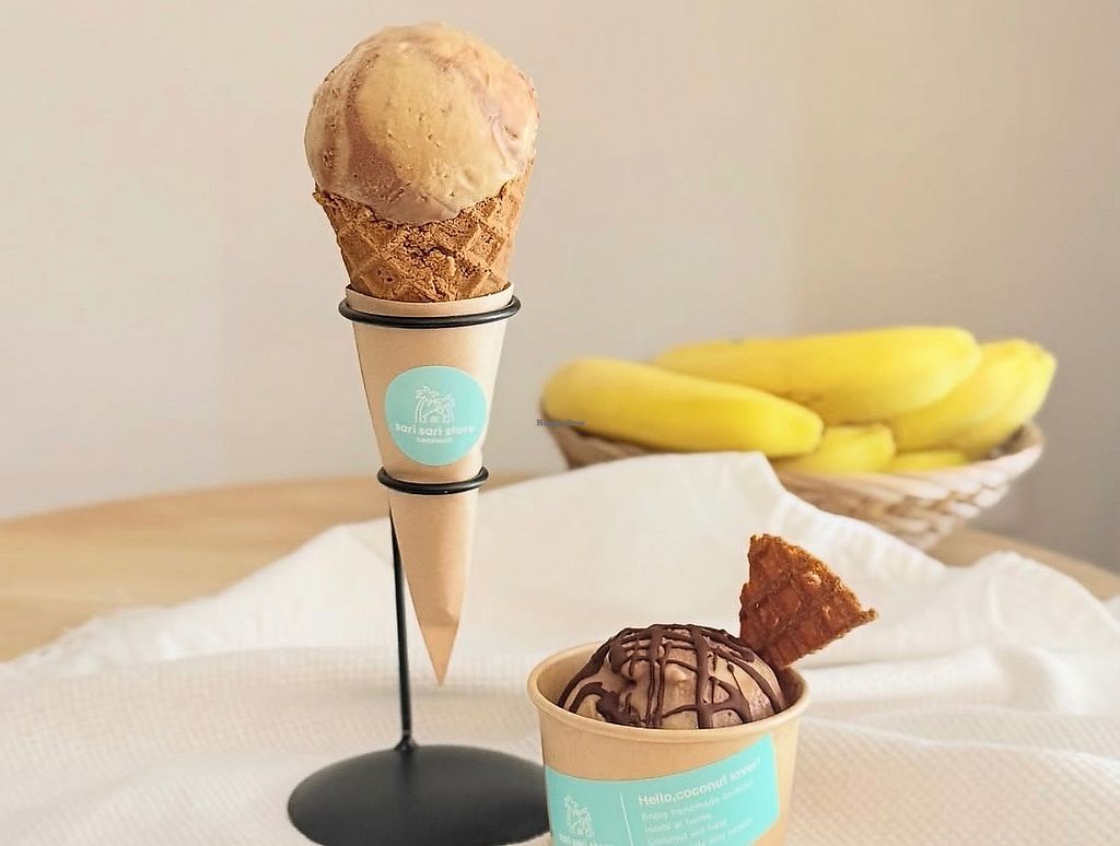 Coconut ice cream and hot chocolate ice cream (not sweet)
