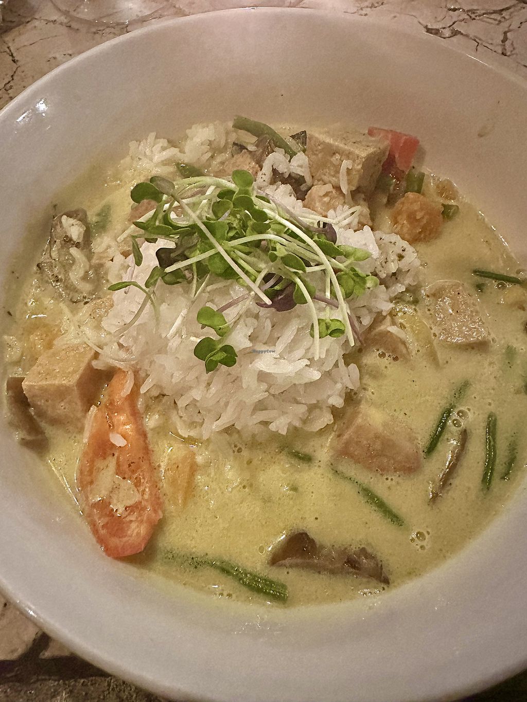 The two vegan dishes are clearly marked on the menu, a noodle dish with tofu it coconut vegetable curry with tofu. I had the curry and it was delicious.