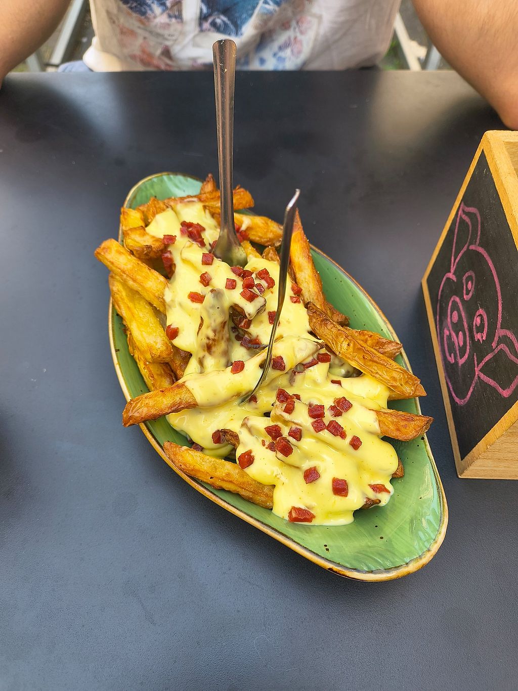 The two of us got the cheesy bacon fries, a hawaii burger, fish burger, cheese burger and döner burger and everything was really amazing. I can especially recommend the cheesy fries and the döner burger! As for drinks you should definitely try the maracuja lemonade!
