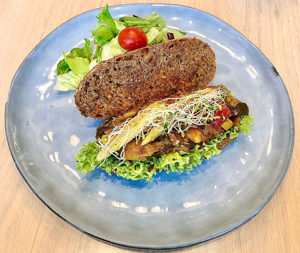 German bakery offering a few vegan items such as focaccia, pumpkin seed bun, ciabatta, multi-seed bun, French baguette, ratatouille sandwich and drinks with non-dairy milks. Open Mon-Sun 8:00am-10:00pm.