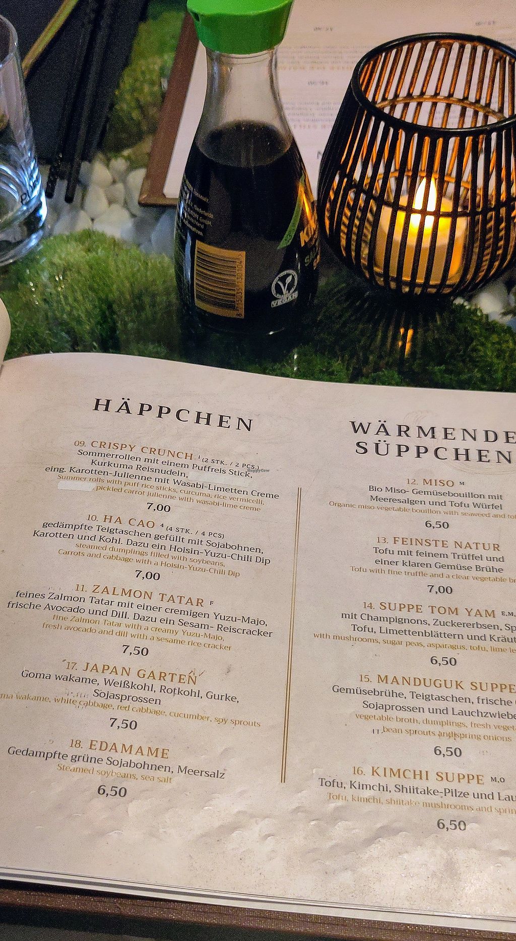 Secret Garden Munich delivered exceptional vegan food! The Daruma Maki’s black rice paired beautifully with creamy avocado and sweet mango. Raijins Thunder Taste impressed with its smoky tofu-surimi and zesty wasabi-lime sauce, while the Golden Foo Dog tempura roll offered satisfying crunch and umami depth. The steamed dumplings were perfectly seasoned and the summer rolls fresh and crisp.