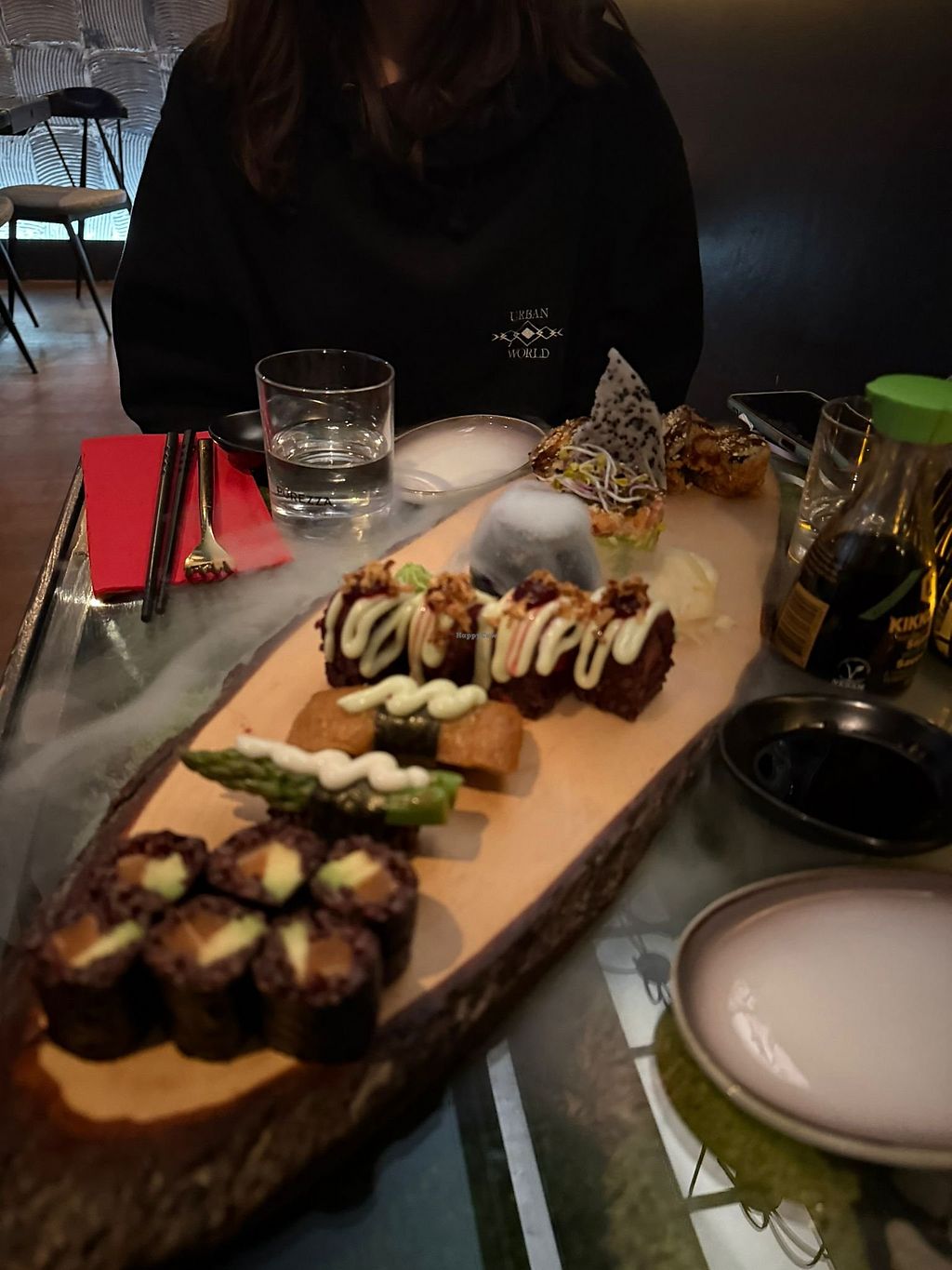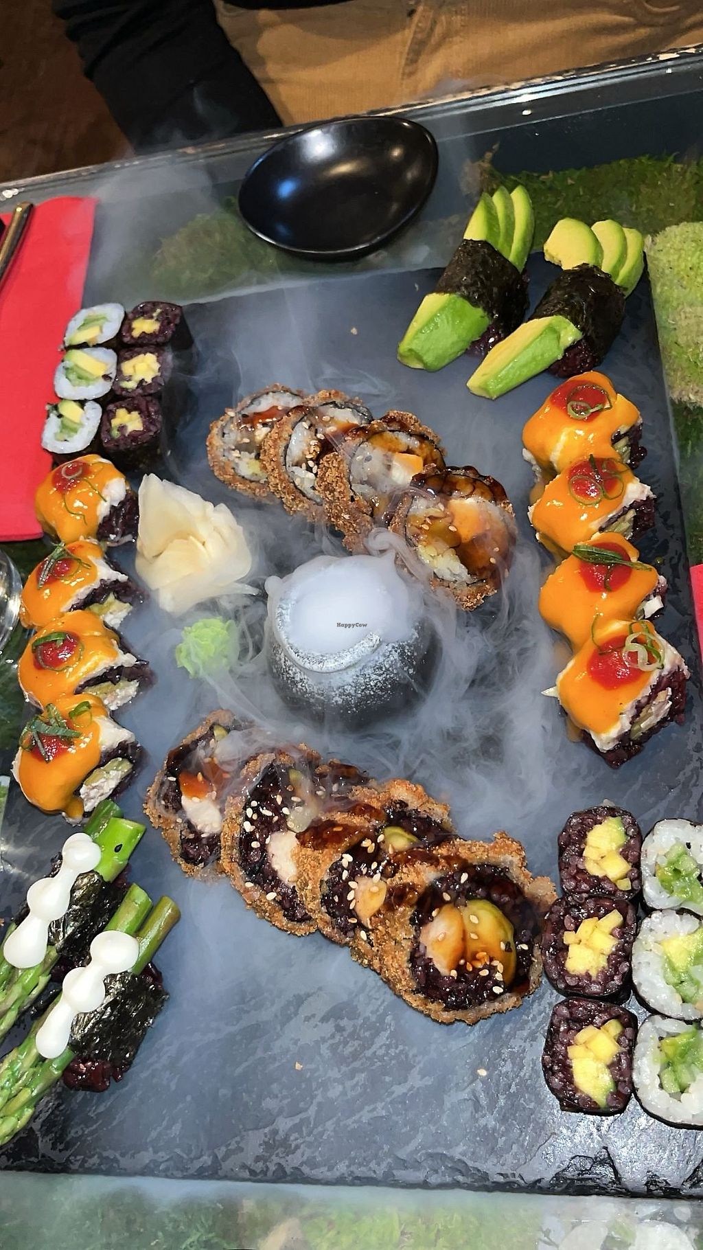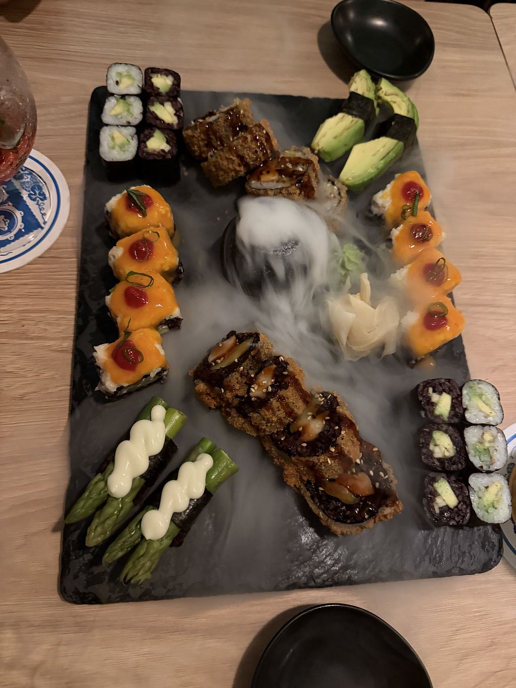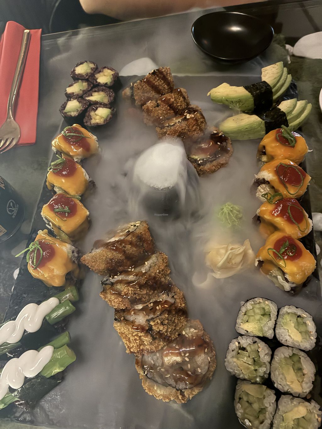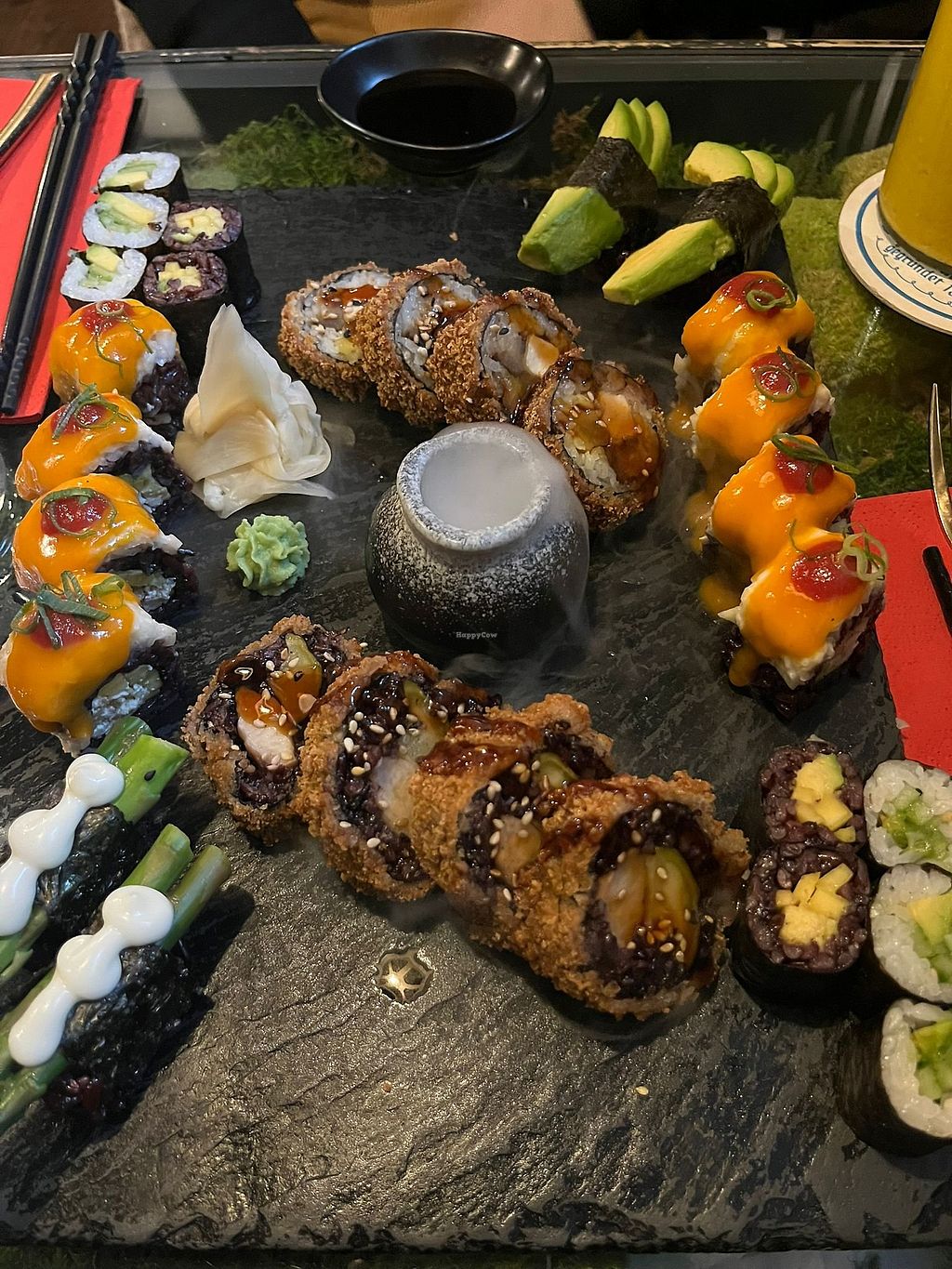 A diverse menu. We had the platter for 2 and it was stunning. There are also vegan desserts to choose from as well as cocktails and sake.
