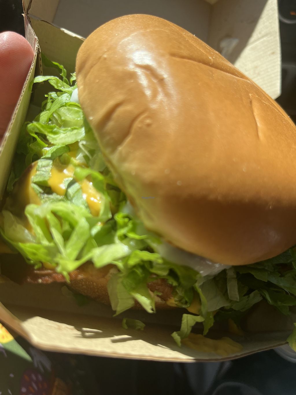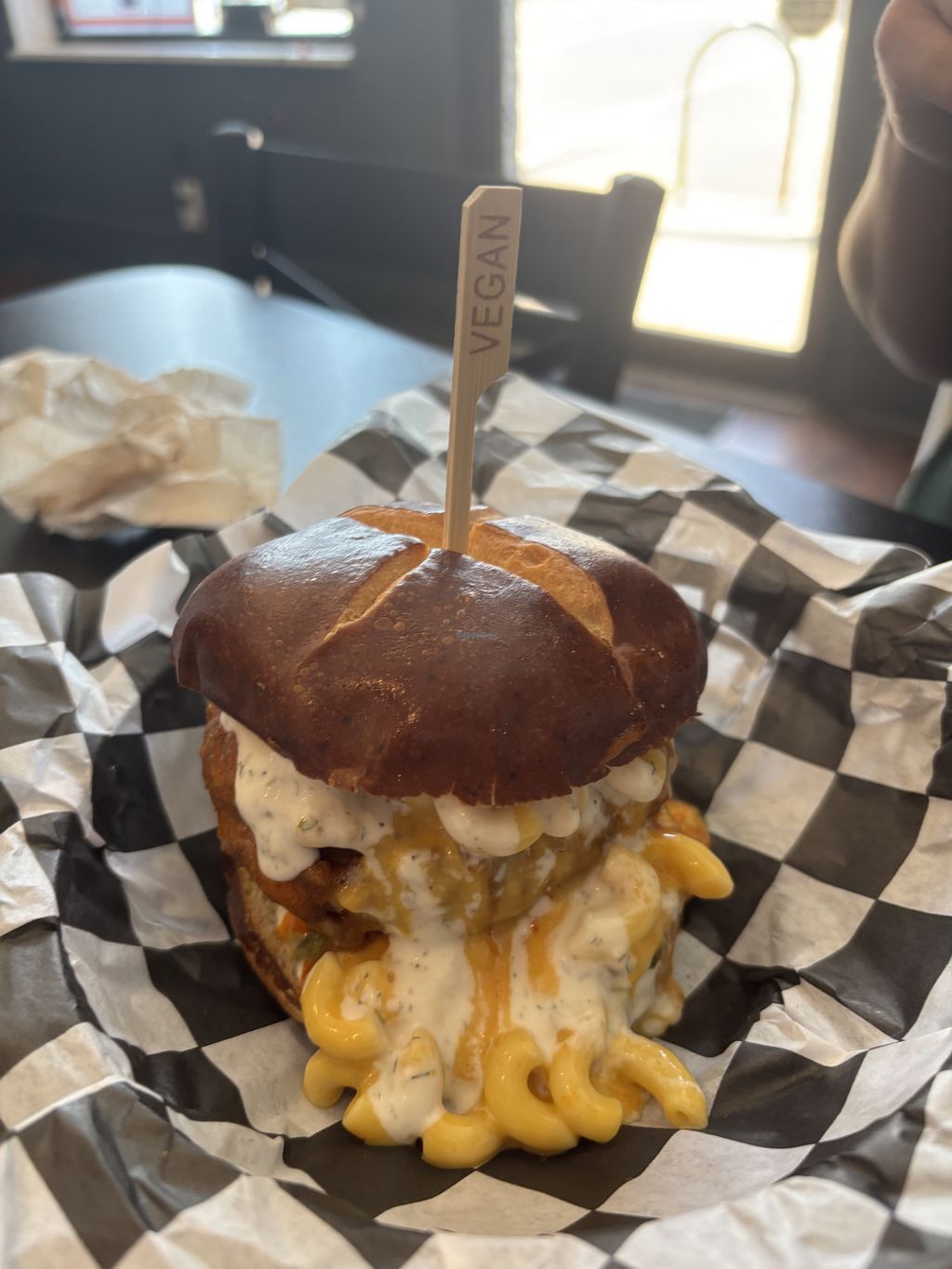 I ordered the Anarchy Burger and my husband got the Buffalo Chiken’ Sandwich. The anarchy burger was supposed to be like a Big Mac and while it did not really taste like how I remember Big Macs, it was still very good. However, the Buffalo chicken burger was the star of the show. It had a very tasty ranch style sauce on it and the “chicken” was excellent. The breading on it was very crunchy. I also expected the food to be super greasy, but it wasn’t, which was great! Will definitely go back. They had a good variety of desserts too (we did not get any, but next time). They also had craft soda on tap!