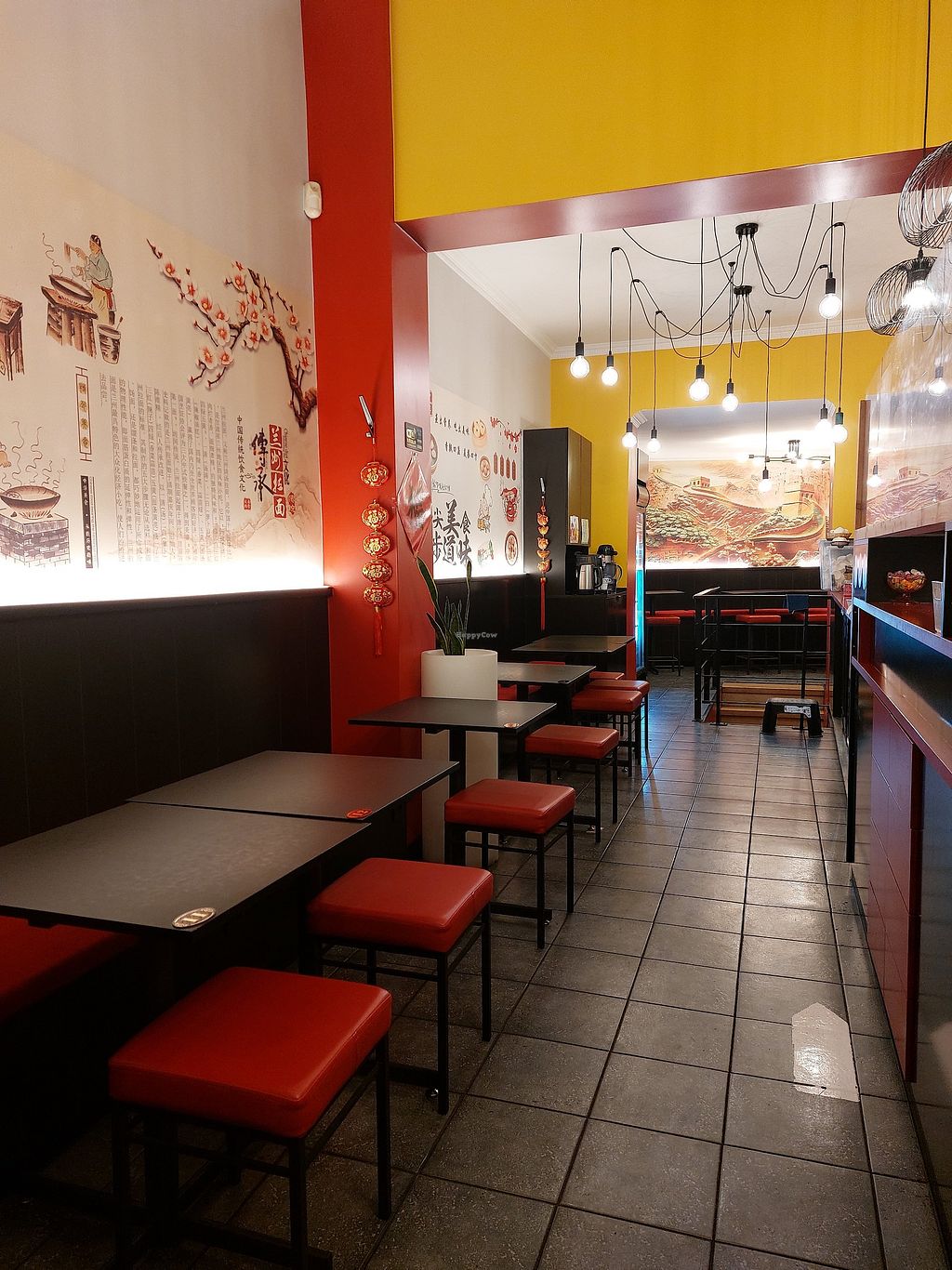 Busy restaurant serving handmade noodles situated along a lovely boulevard. It is not fast food Chinese. The staff is rather pleasant (speaking several languages) and is very clear as to what is vegan, and just about everything is—except the obvious. They even inquired about allergies. The noodles are very fresh and are complimented by homemade sauces.