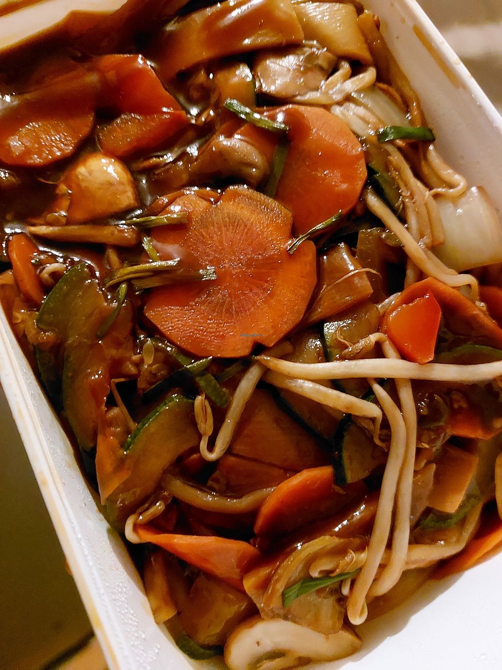 De noedels waren lekker, de porties waren zeker groot genoeg. Op de oestersaus na zijn alle sauzen vegan. De black pepper was lekker pittig.