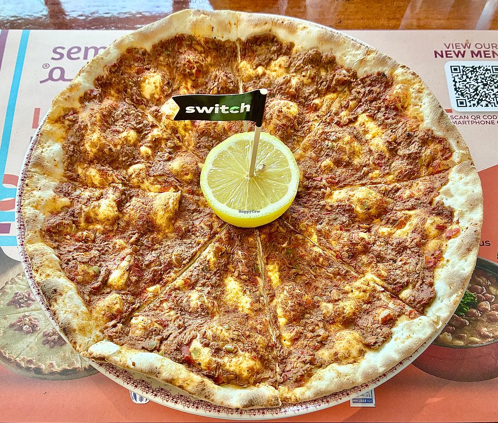 The lahm bel ajin was the only slight disappointment of the entire experience. Though it did have a wonderfully thin, crisp base, I felt as though the topping lackedpunch,h as it was spreadtooo finely; a more substantial smear would probably have elevated it significantly.
