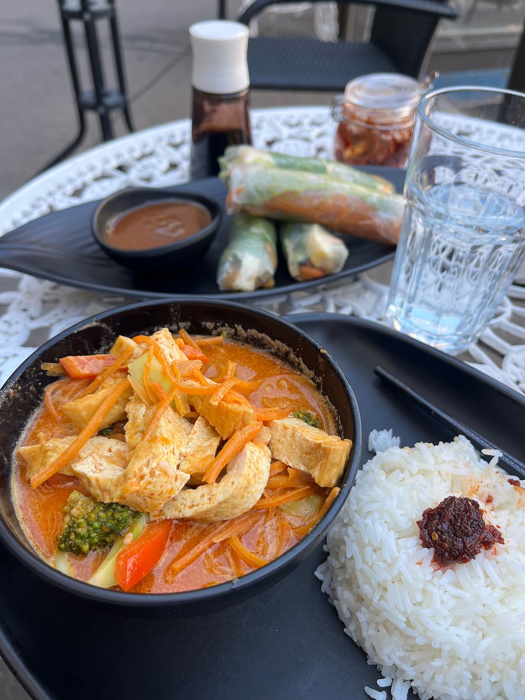 Enchanted by the great reviews on Happycow, I really wanted to check this place out during my visit to Helsinki. The nearby road was a huge construction site, so we had to climb our way to the building, and found our way to the restaurant. The surroundings have a business vibe, but Sen Chay surprised with its laid back mystique — when we entered, there was no one at the counter, and everything was kind of confusing. The person who came to greet us didn‘t speak any English, but was nevertheless friendly, and the menu had both English and photos to describe the food. I was super hungry so I got the summer rolls and a tofu-rice dish. Both were very delicious!