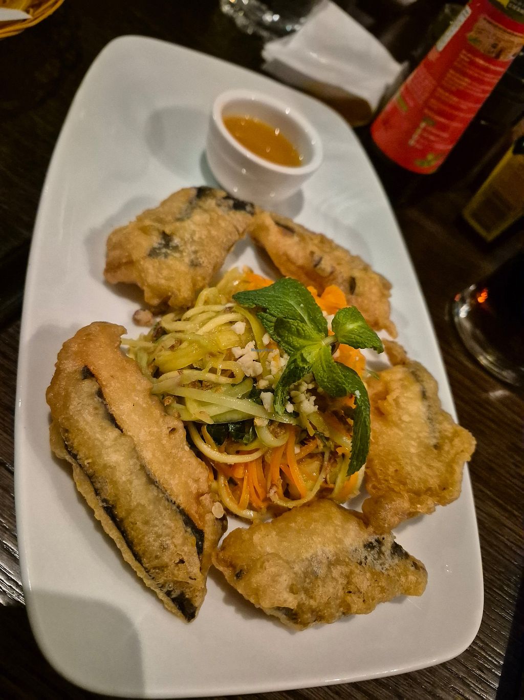 Missing prawn crackers? Theirs are as good. Fab crispy mushroom starter. Aubergine and tofu main - a bit gelatinous (in texture - still vegan!)