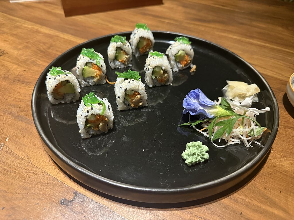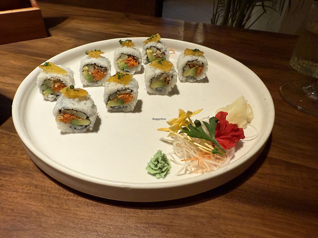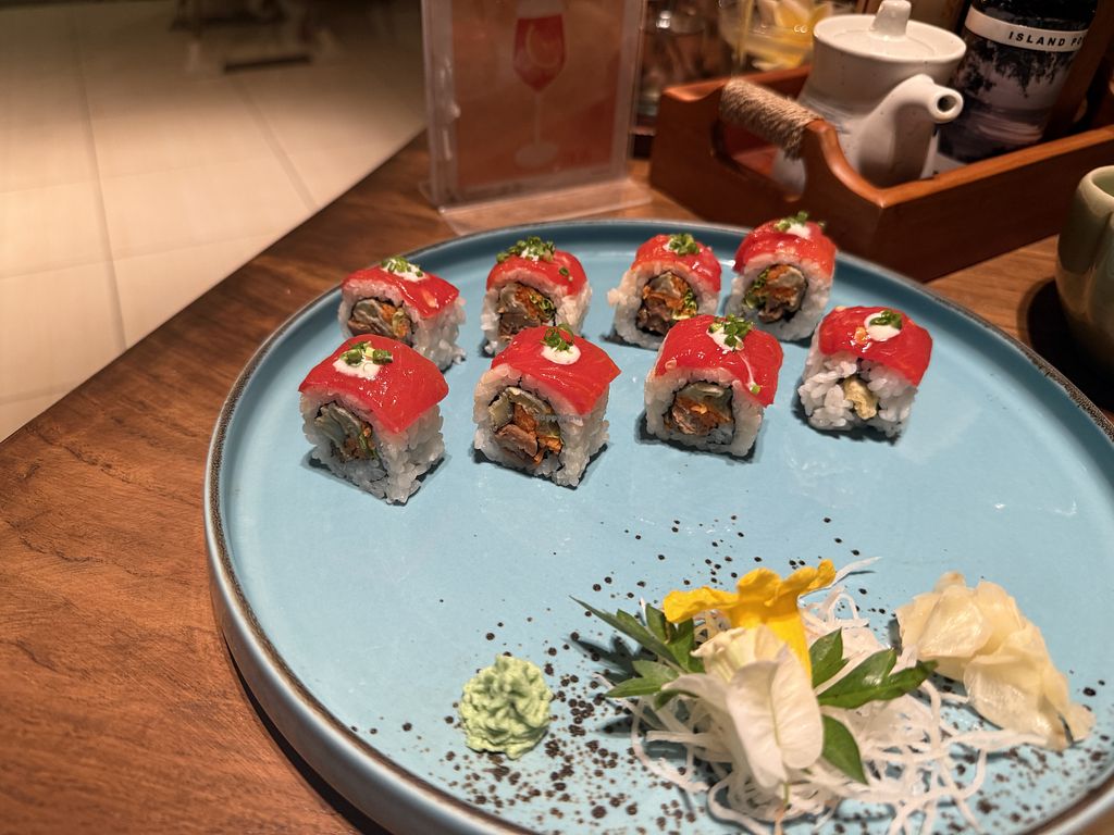 I had the Vegan sushi roll… it was excellent. Crispy tofu, avocado and a slice of pineapple… everything came together to give a good flavor.