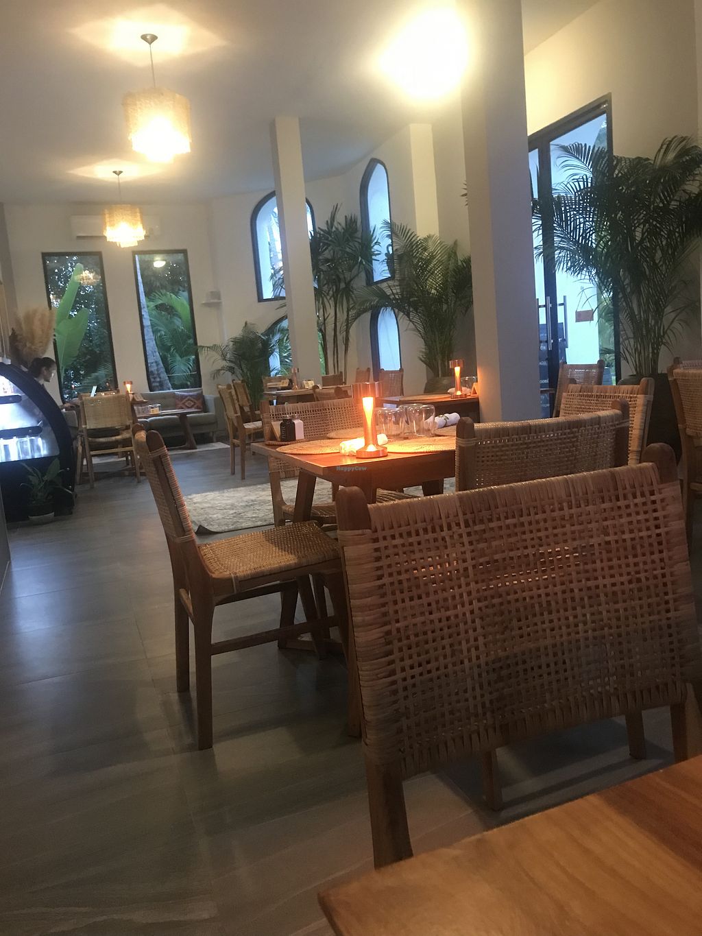 Definitely our favorite veggie restaurant in Koh Pha-ngan! Went there at least twice a week (sometimes more!) during our month here. Great food! Very kind staff, and beautiful venue (with AC!) at a great resort (Shanti Rock?). Favorites dishes include the mango tartar, raw sushi, lasagna, gnocchi (pumpkin almond flour with cashew cream), and Caesar salad! Really great juices too and still so many things to try 🤍 some dishes offer optional organic eggs, no dairy