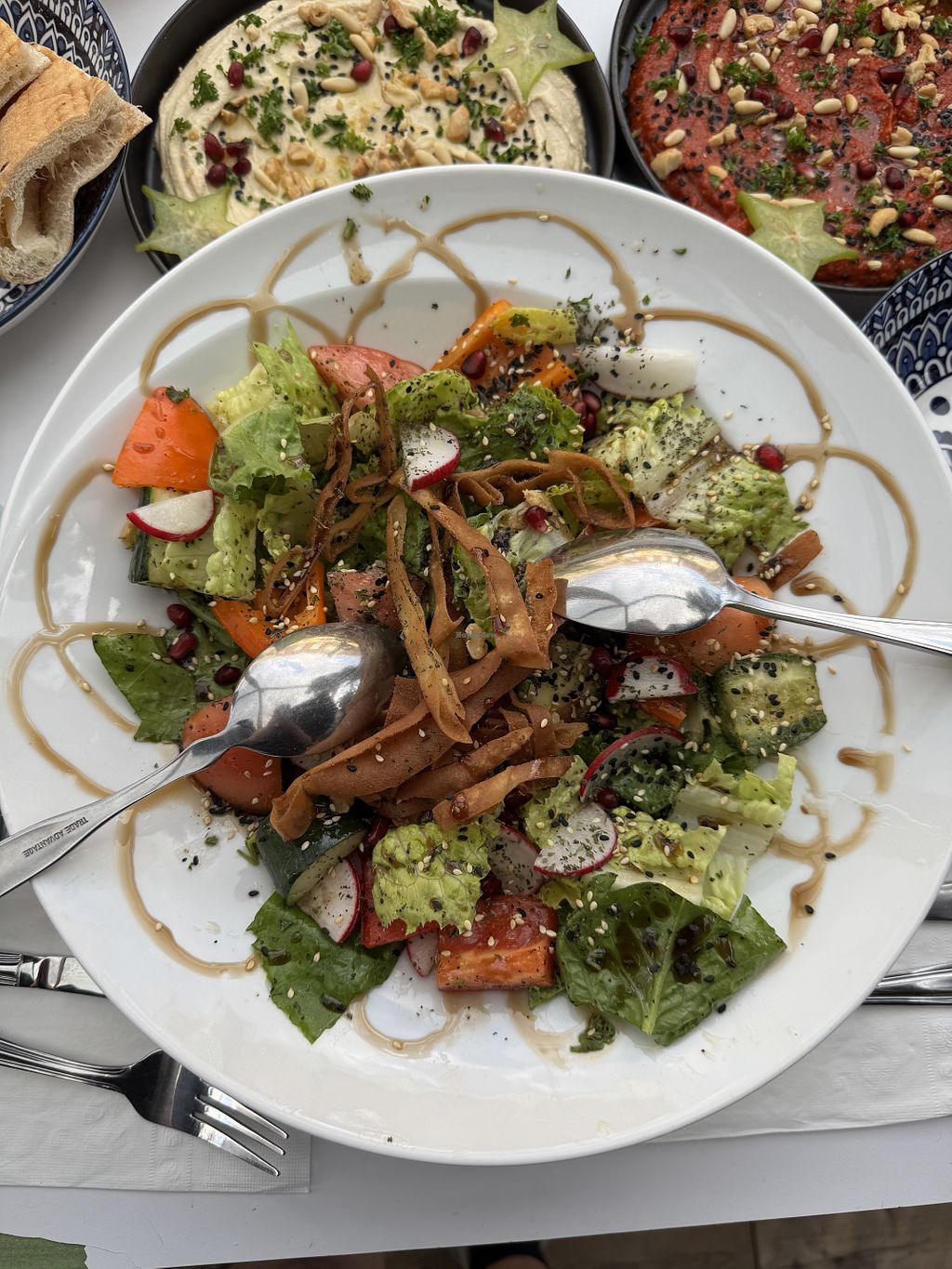 We are here over the summer and still talk about it. We loved the hummus with star fruit and all of the whole foods they included in their dishes. Their fattoush is the absolute best fattoush salad I’ve ever eaten!! Probably the best salad overall too. I couldn’t get over how fresh everything tasted.