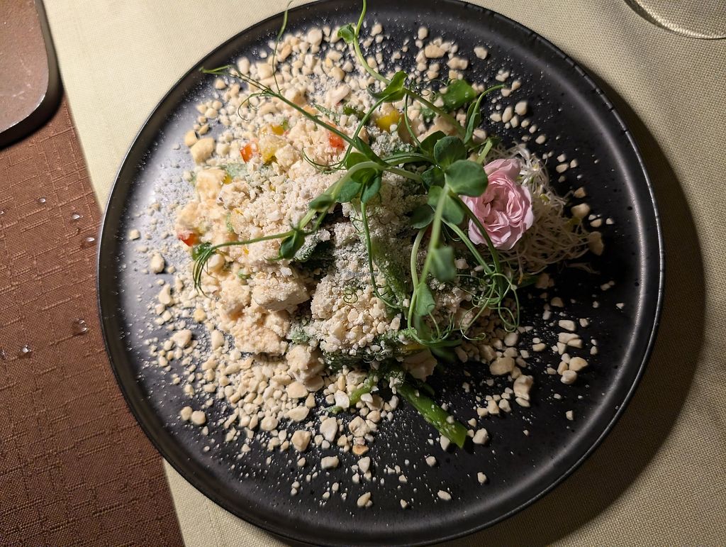 We happened to be staying close by Shambala so decided to check it out for one of our nights in Ljubljana. We made a reservation, which it says is necessary on the website but the restaurant was mostly empty when we were there. I had the Snow pea tofu starter which was delicious and the vegan pad thai (also very good). Many of the items have fish as a listed allergen but the server said they were able to modify it so that it would be vegan. All in all, a lovely meal.