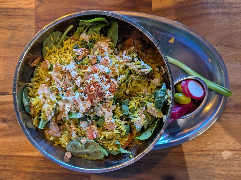 Serves meat, vegan options available. Fast-casual Syrian restaurant serving a few vegan items such as falafel, fava beans and hummus. Open Wed-Sun 11:00am-8:00pm.