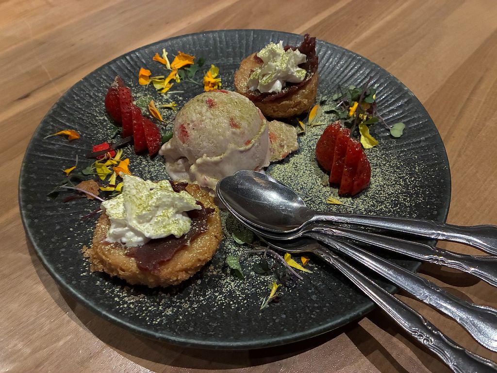 Mochi donut holes with strawberry ice cream