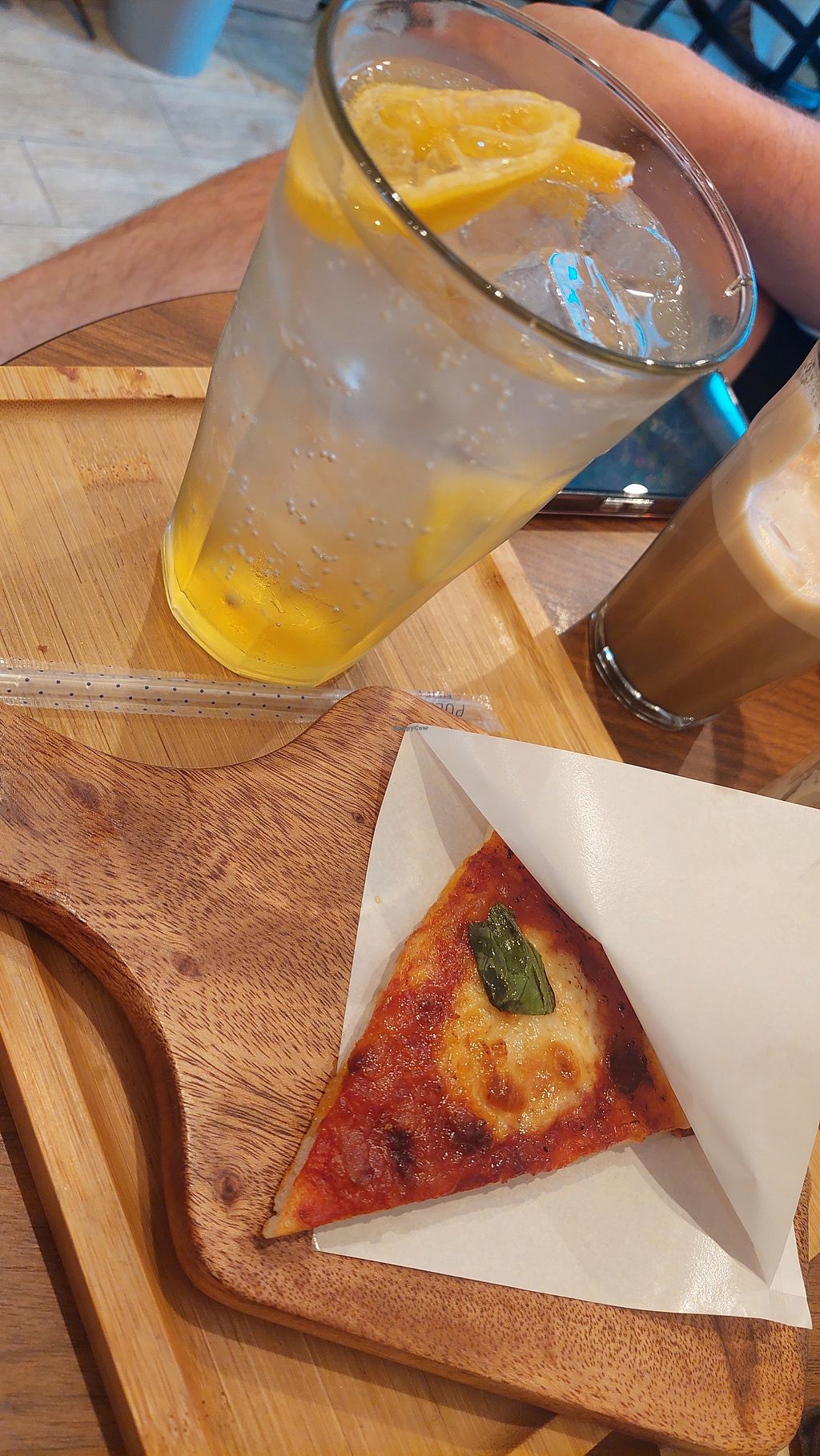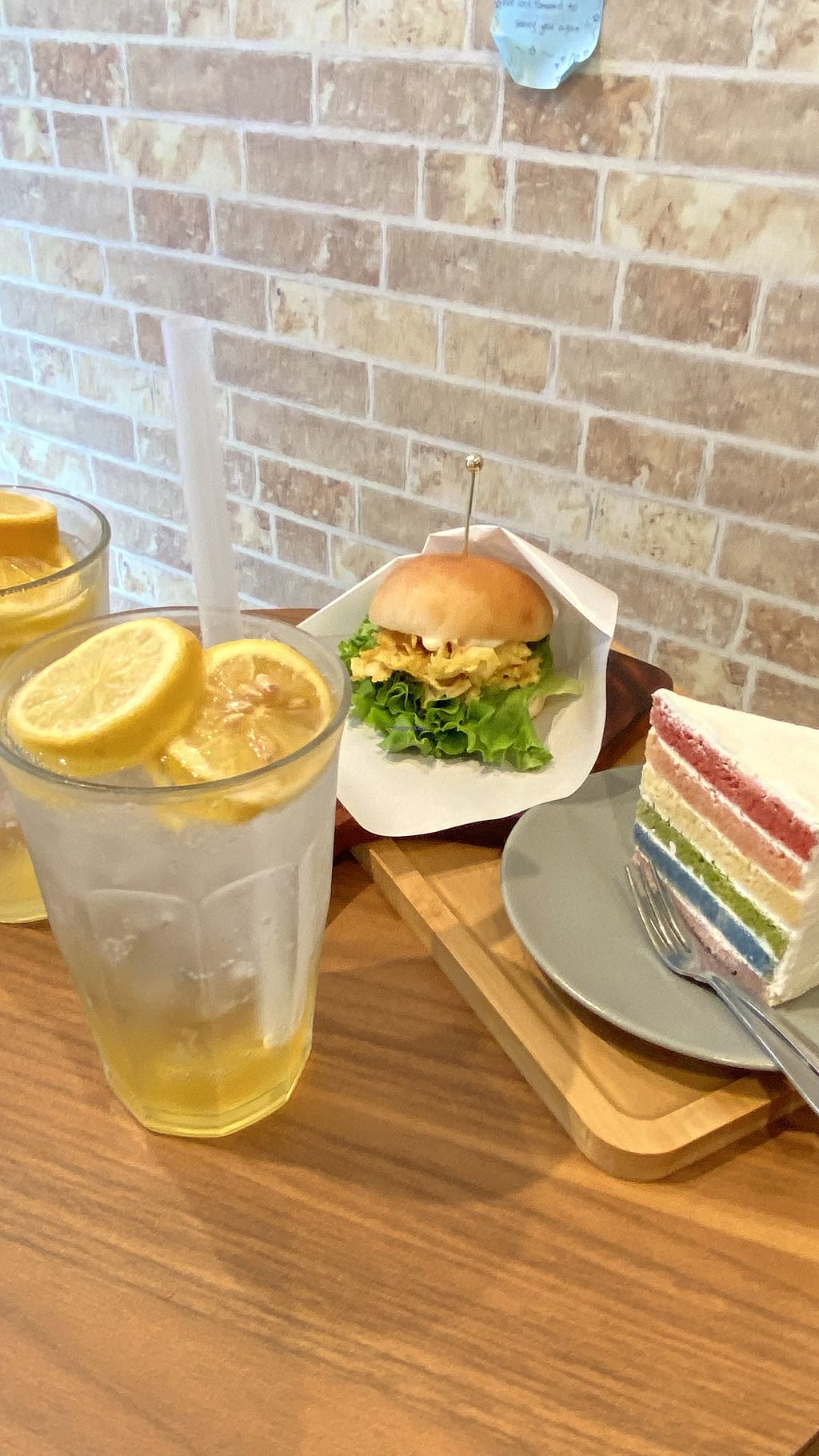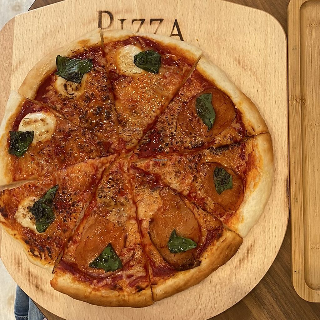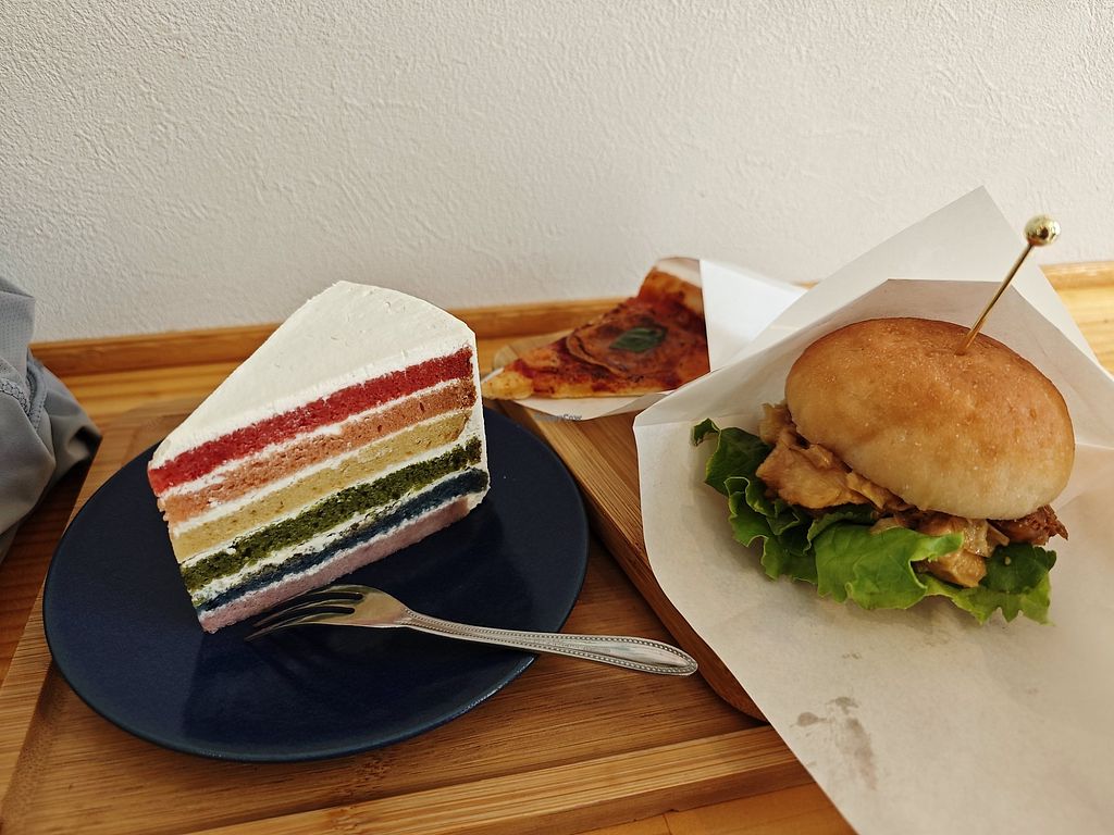 Tried the burger and cake, didn't really like the yuba soy skin as patty, bun was really good but the soy bean taste is strong. Cake looks good but doesn't taste any special, a little dry. Pizza is the star, the baked cheese and sauce on top really shines