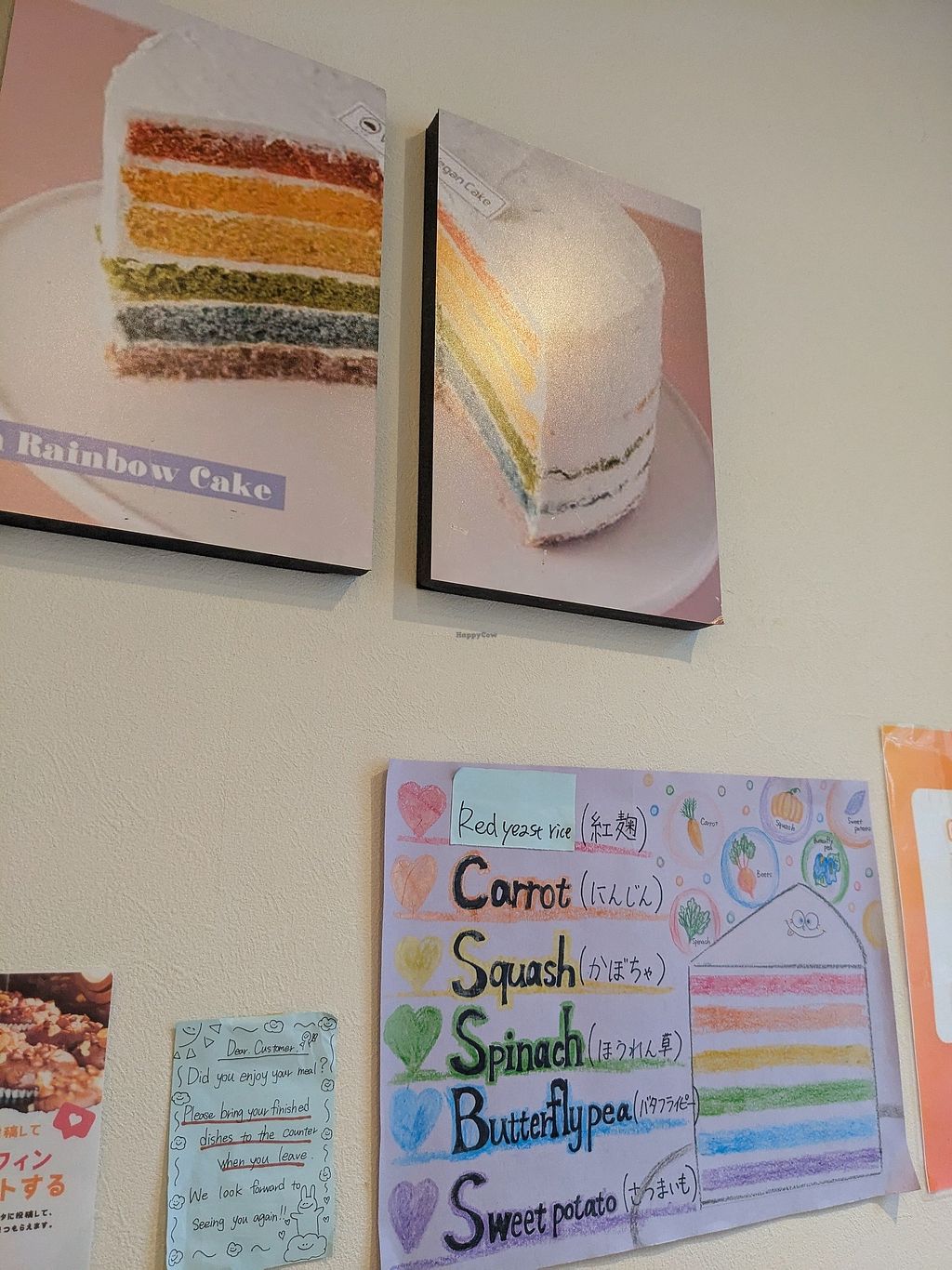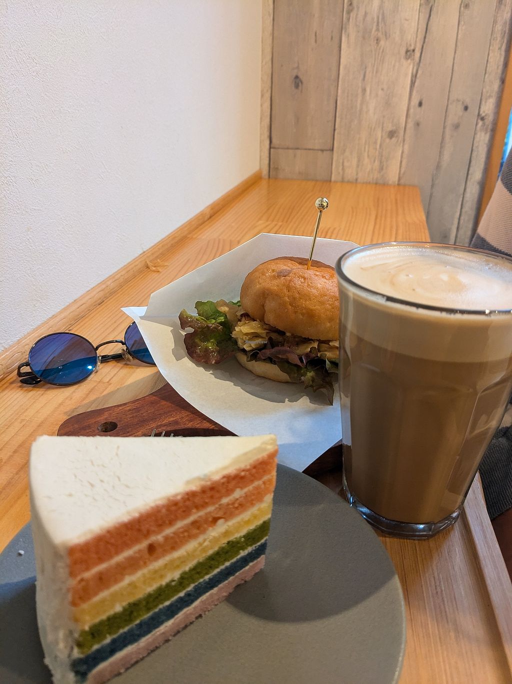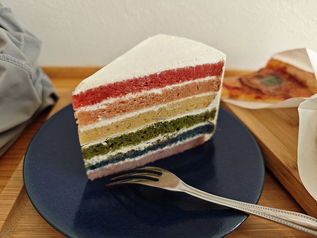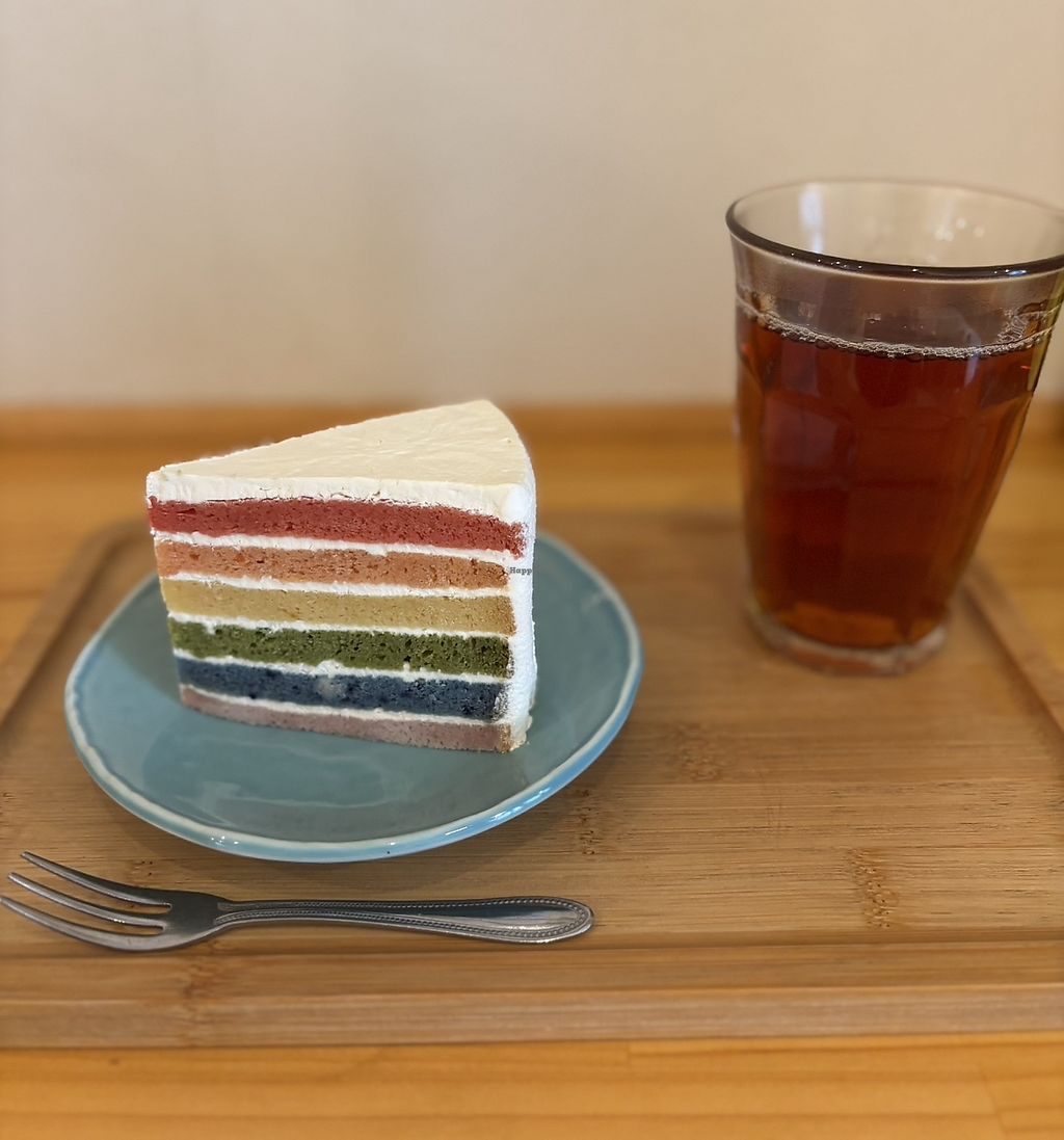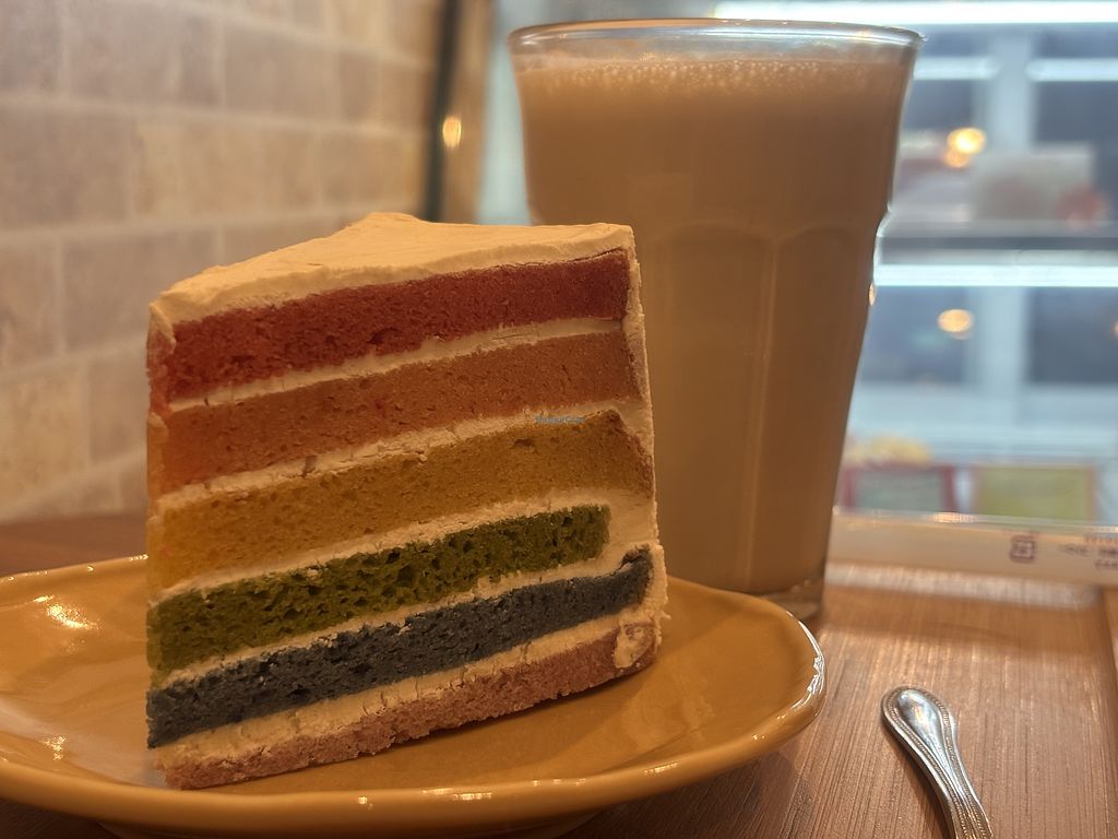 The rainbow and strawberry cakes were good. Soy and oat milk was available for the coffees.