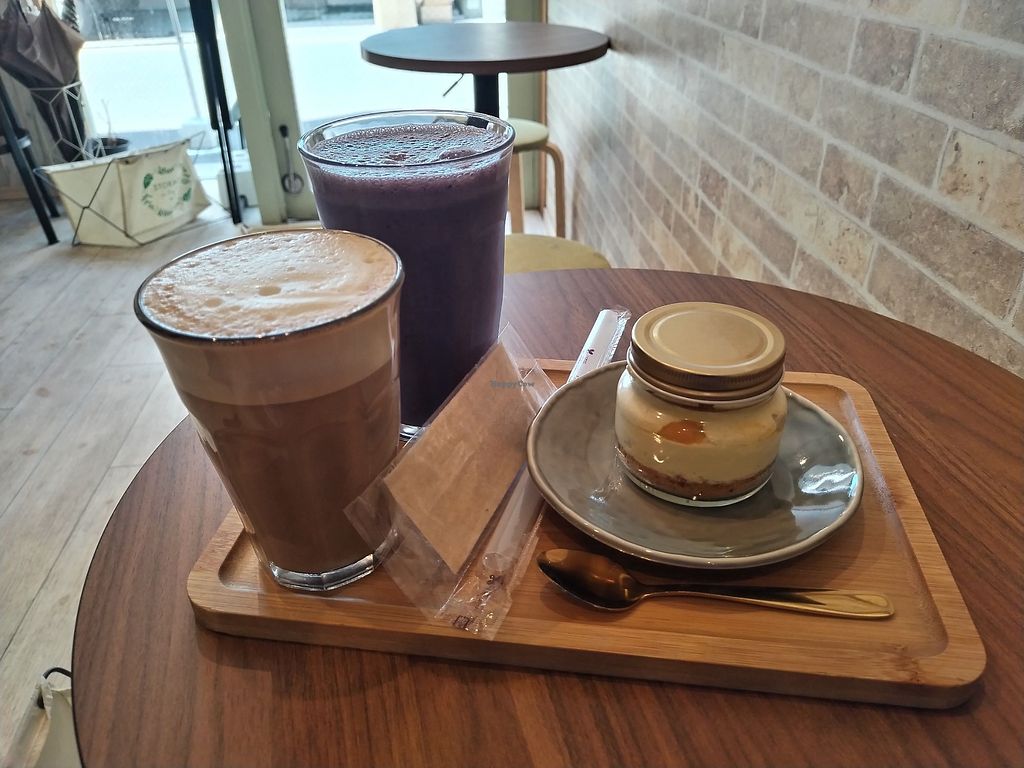 I had a soy latte, blueberry smoothie and Mango tiramisu. Menu 100% vegan 😋🌿