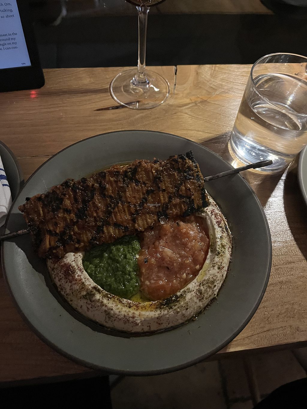Fully vegan Israeli restaurant and wine bar. Offers tapas style dishes such as shawarma. Seasonal menu. Open since summer 2024. Open Mon-Sun 5:00pm-11:00pm.