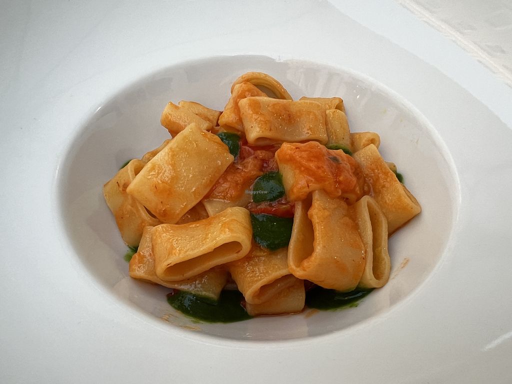 I really recommend this place! Service was great, as was the food. We had orecchiette cime di rapa (without anchovies) and another pasta. Staff was very kind and well informed on what could be made vegan. The location was also a plus, on a calm street next to a beautiful church.