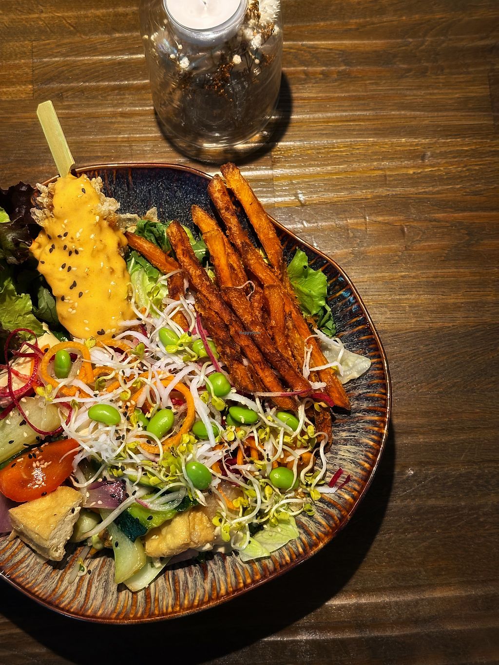 Vegetarian restaurant specializing in Asian cuisines. Popular vegan options include "Bloom vegan," gou cuon, sommerrolle, "Herb & soul bowl," "Harmony root bowl," and more. Do ask for no dairy while ordering. Open Mon-Sun 11:00-23:00. Closed Mon.