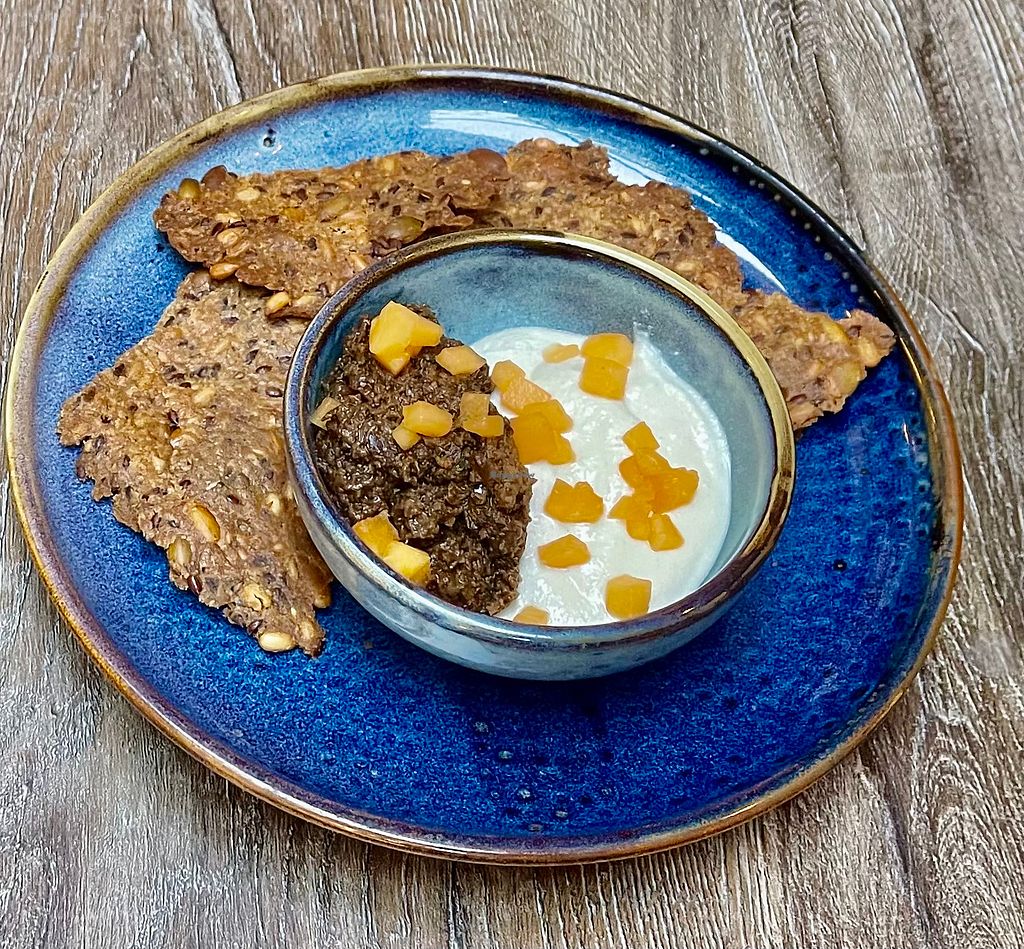 Falafel main with mushroom rice, spinach fritatta, roasted pumpkin, ma…