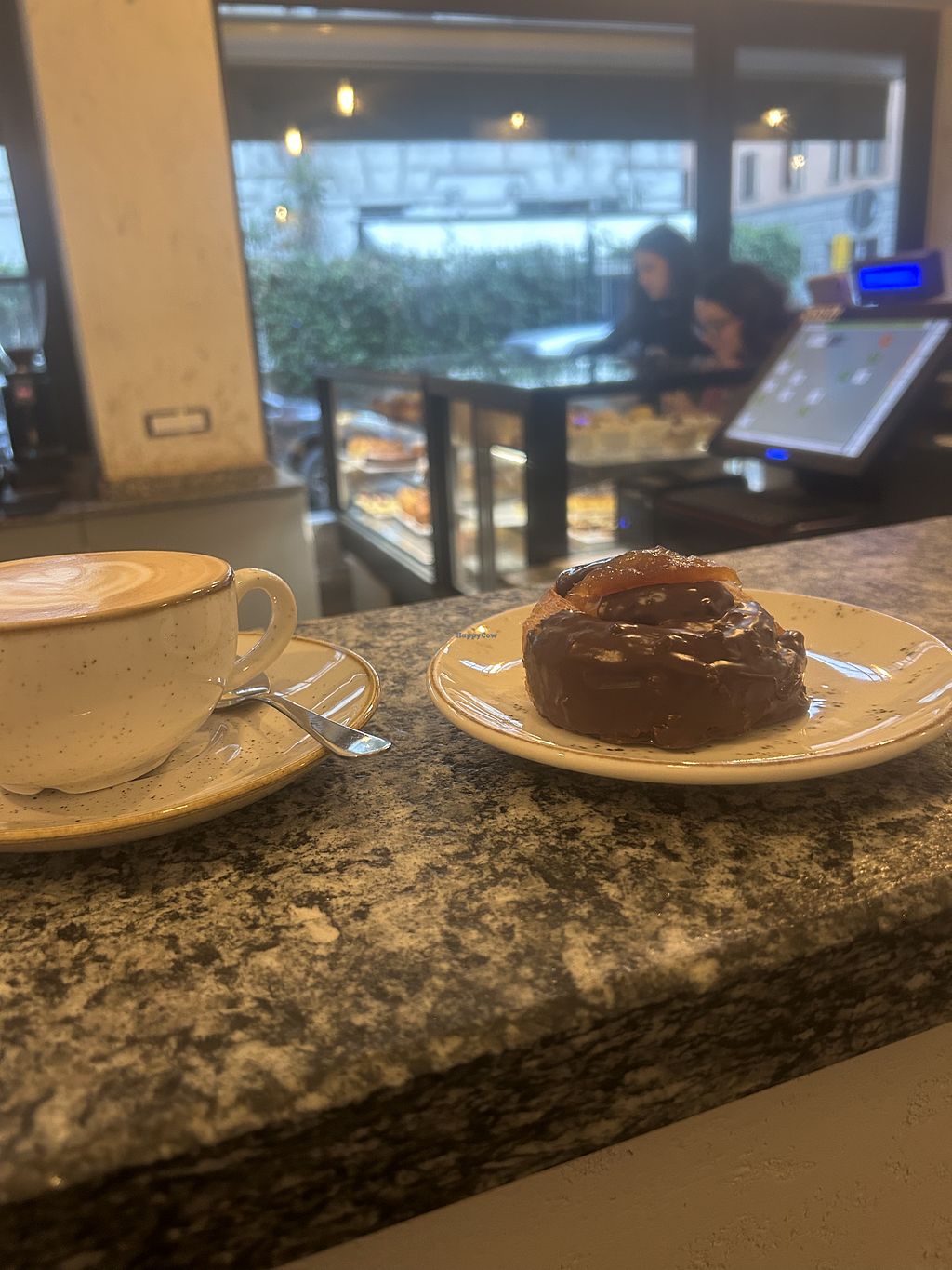 Caffetteria con pasticceria che offre opzioni vegane come croissant, torte e biscotti. Open Mon 08:30-19:00, Tue-Sat 08:00-19:00, Sun 08:30-19:00.