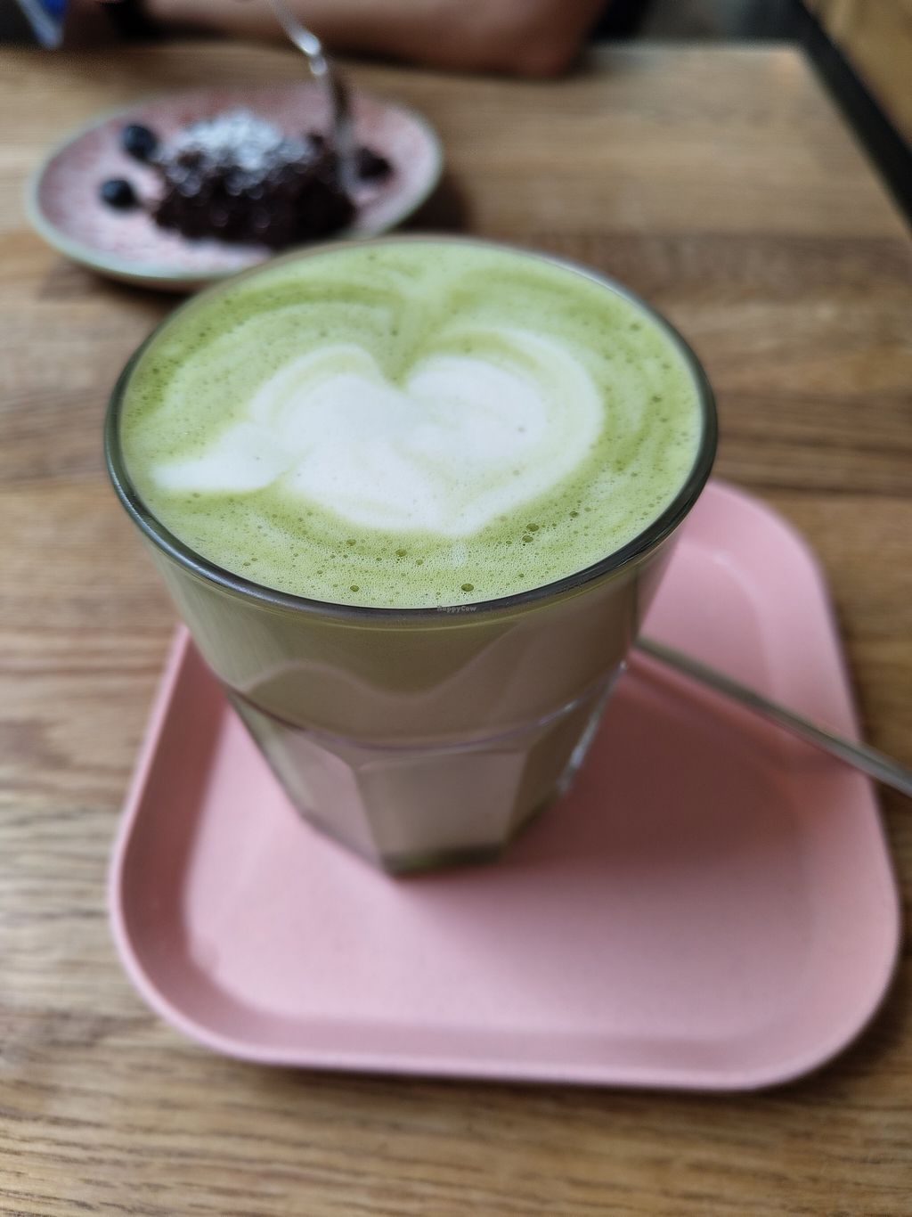Der Matcha Haferlatte mit Pumpkinspice, Karottenkuchen und Brownie sind empfehlenswert.