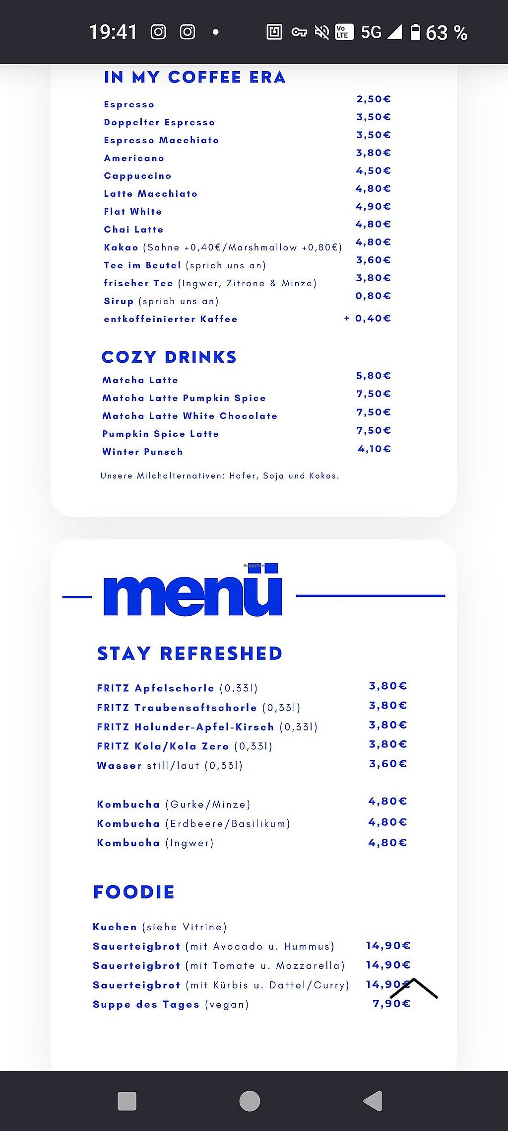 Read moreDie Getränke können alle vegan bestellt werden. Die Kuchen und Kekse sind auch alle immer vegan. Das Sauerteigbrot gibt es allerdings nur in einer veganen Variante.