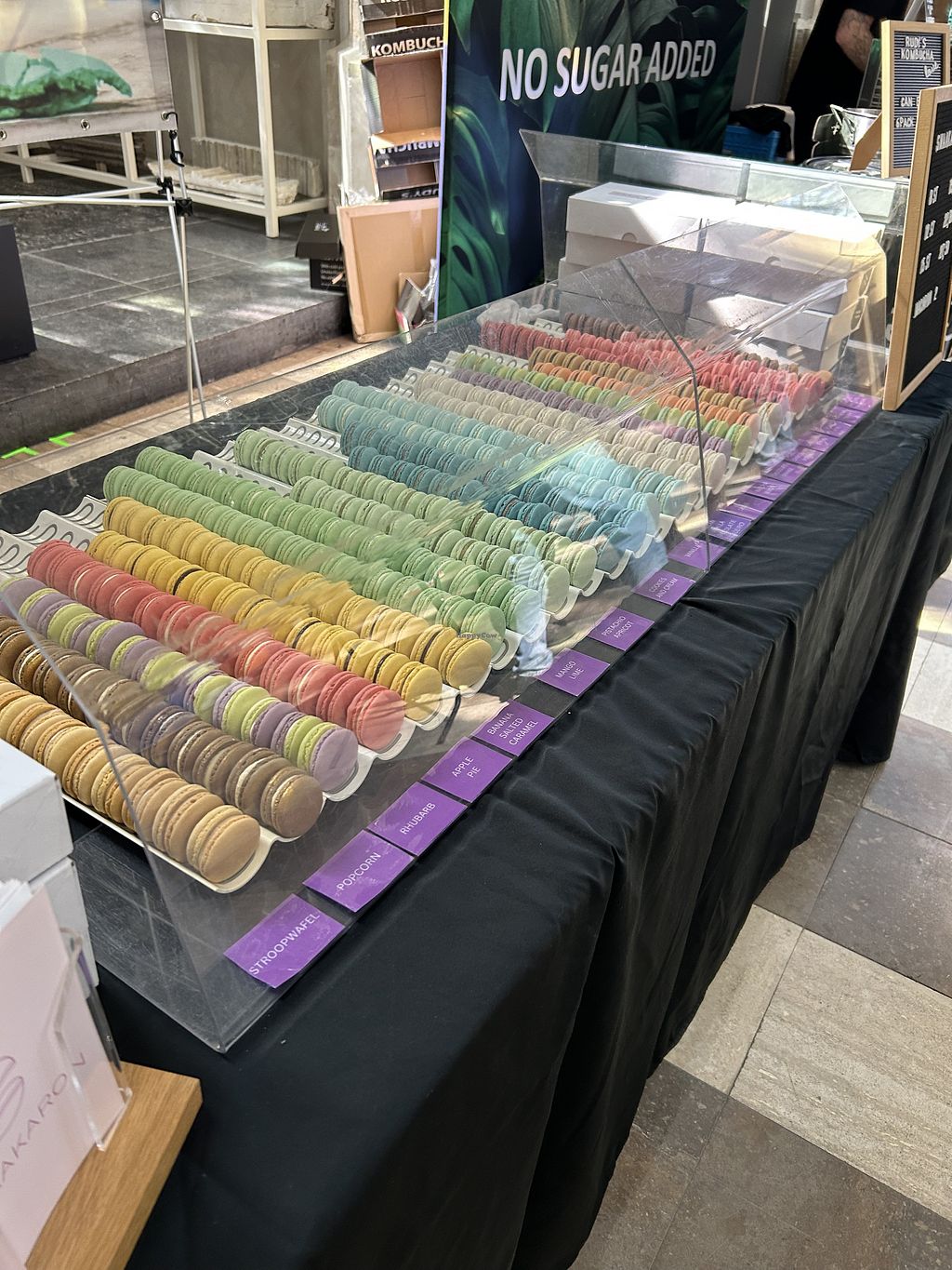 Amazing to find macarons in so many vegan flavours. They are freshly prepared here and you can even pick them up with your own box!