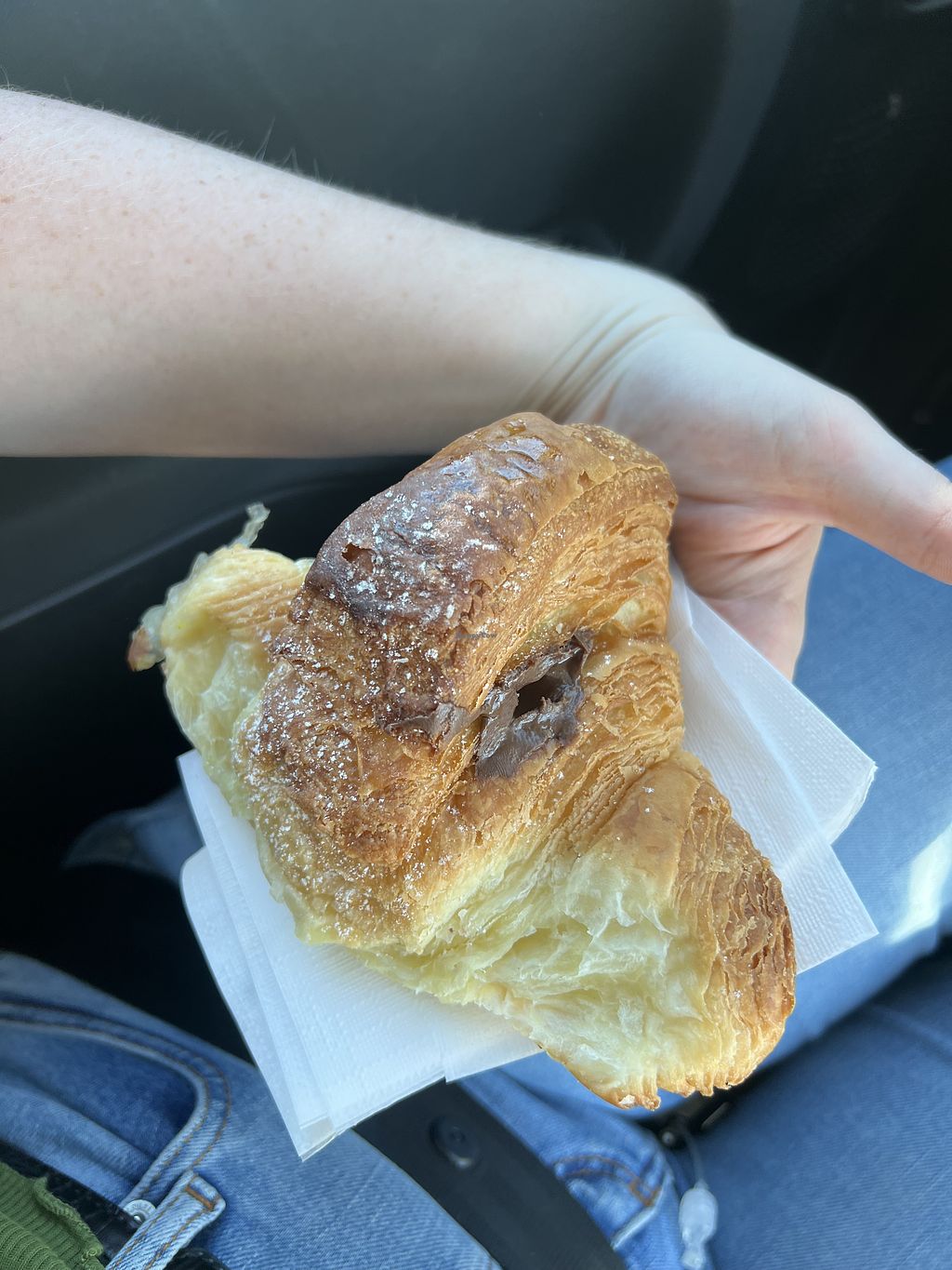 The "New York Reuben" was an incredibly delicious sandwich. It should definitely be eaten warm. The chocolate cornetto was very good, not too sweet and not too dry.