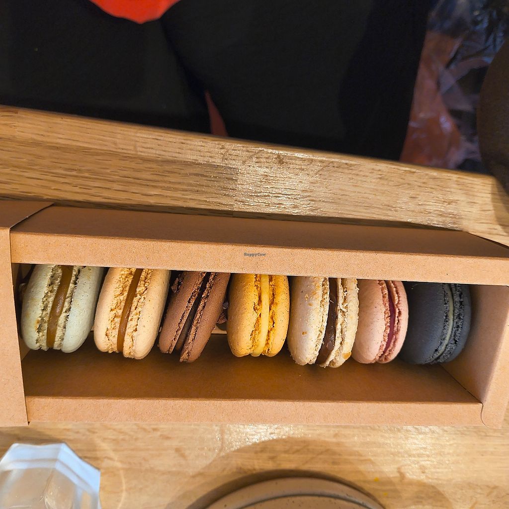 Pros: All 8 flavors of macaroons were amazing 😍, Wraps were filling and very good, Very friendly staff!